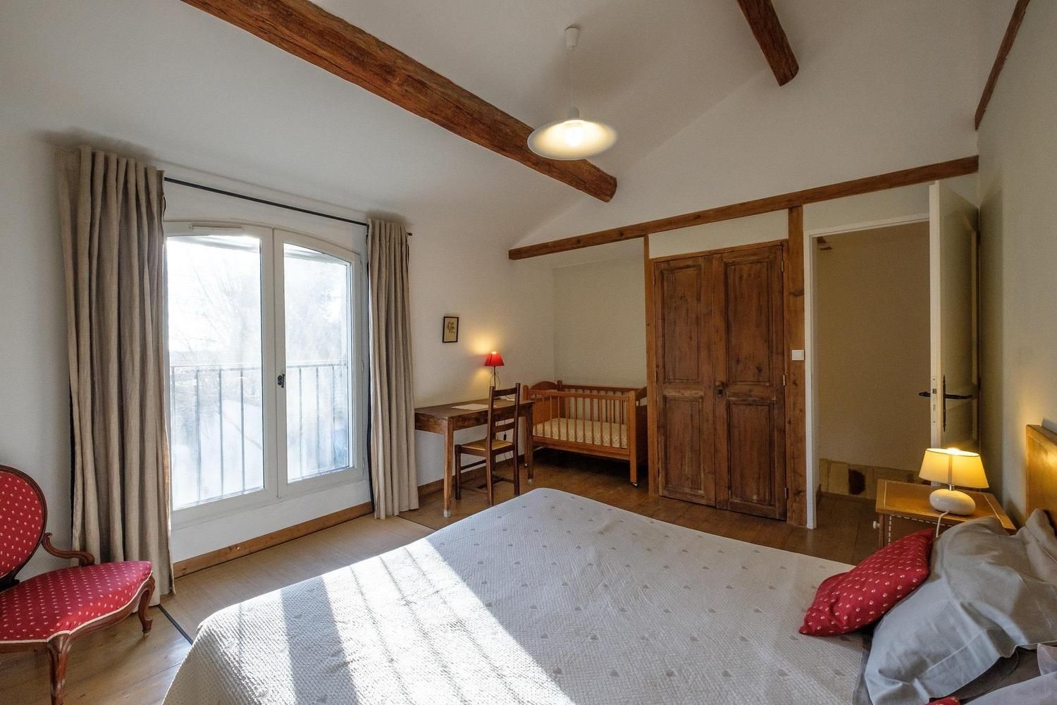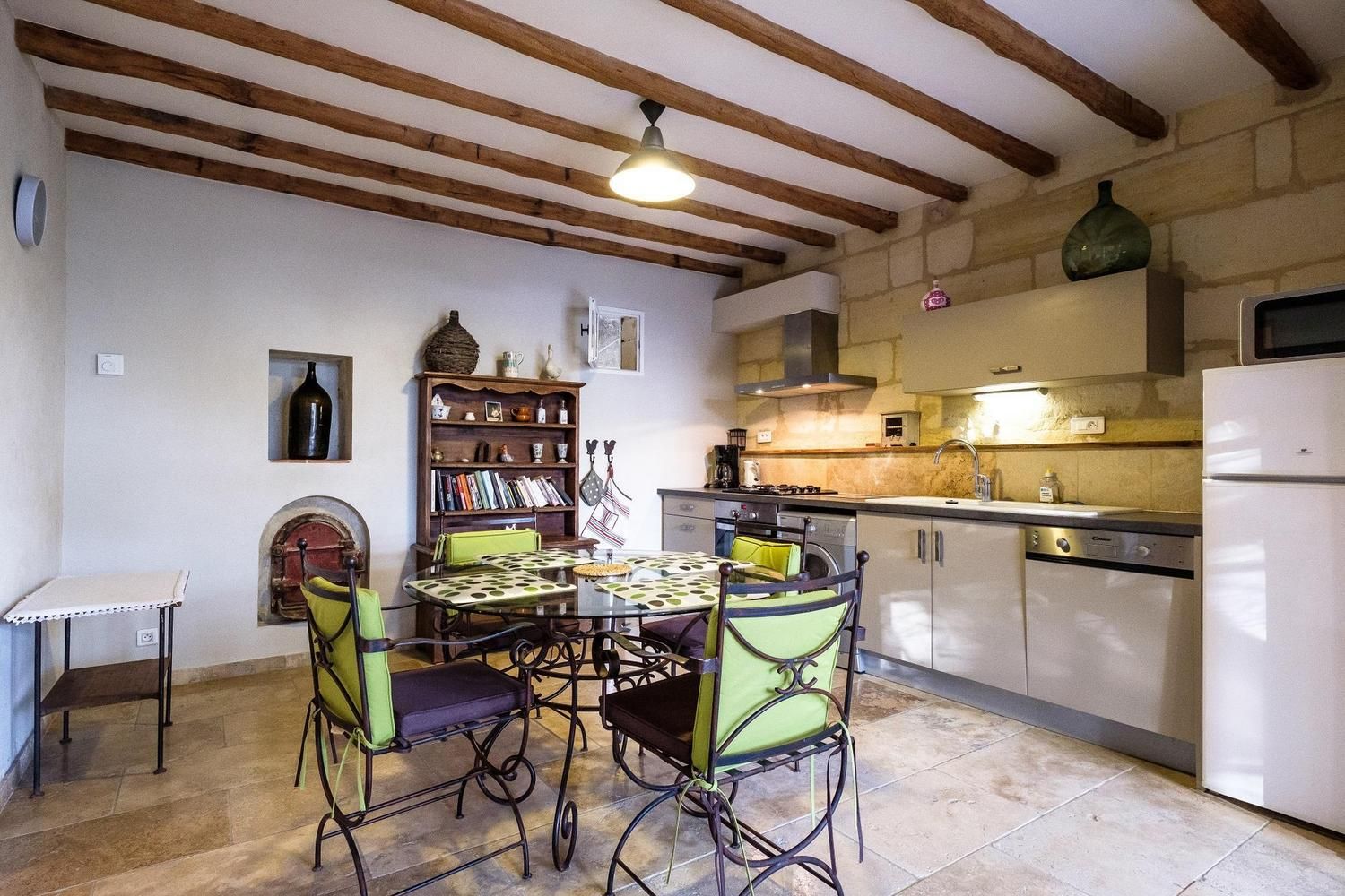 Deux autre gîtes sur la propriété partageant une piscine. En rez de chaussée, entrée par une belle pièce de jour composée d'un séjour/salon/cuisine intégrée (lave vaisselle, lave linge, plaque 4 feux gaz, four, micro ondes, petit électroménager). Coin salon avec canapé et télévision écran plat. Espace repas côté cuisine. Salle d'eau /WC. A l'étage belle chambre aux murs de pierre, avec lit en 180x200 (2lits 90 jumelés - séparables sur demande), avec une décoration soignée et un mobilier (Chevets, tête de lit) en carton design. Lit bébé. Belle vue sur la campagne environnante. Chauffage central complété par chauffage solaire inclus. Draps, linge de maison, de toilette inclus. Terrasse privative gravillonnée et close de 24 m², avec salon de jardin et parasol. Plancha électrique. Equipements communs aux 3 gîtes : Piscine de 5mX10m de 1.40m à 2m de profondeur, accessible de 9H à 20 H du 15/05 au 30/09. Toboggan, balançoire . Propriété non clôturée. Ménage sur demande (35EUR). Taxe de séjour en sus. Un bel endroit pour séjourner : à vous de choisir la direction que vous prendrez chaque jour. Les espaces sauvages de la Camargue, Arles et ses monuments antiques, ou encore les Alpilles (l'Abbaye de Montmajour est aux portes d'Arles) voire même Avignon. Tout est à votre portée...