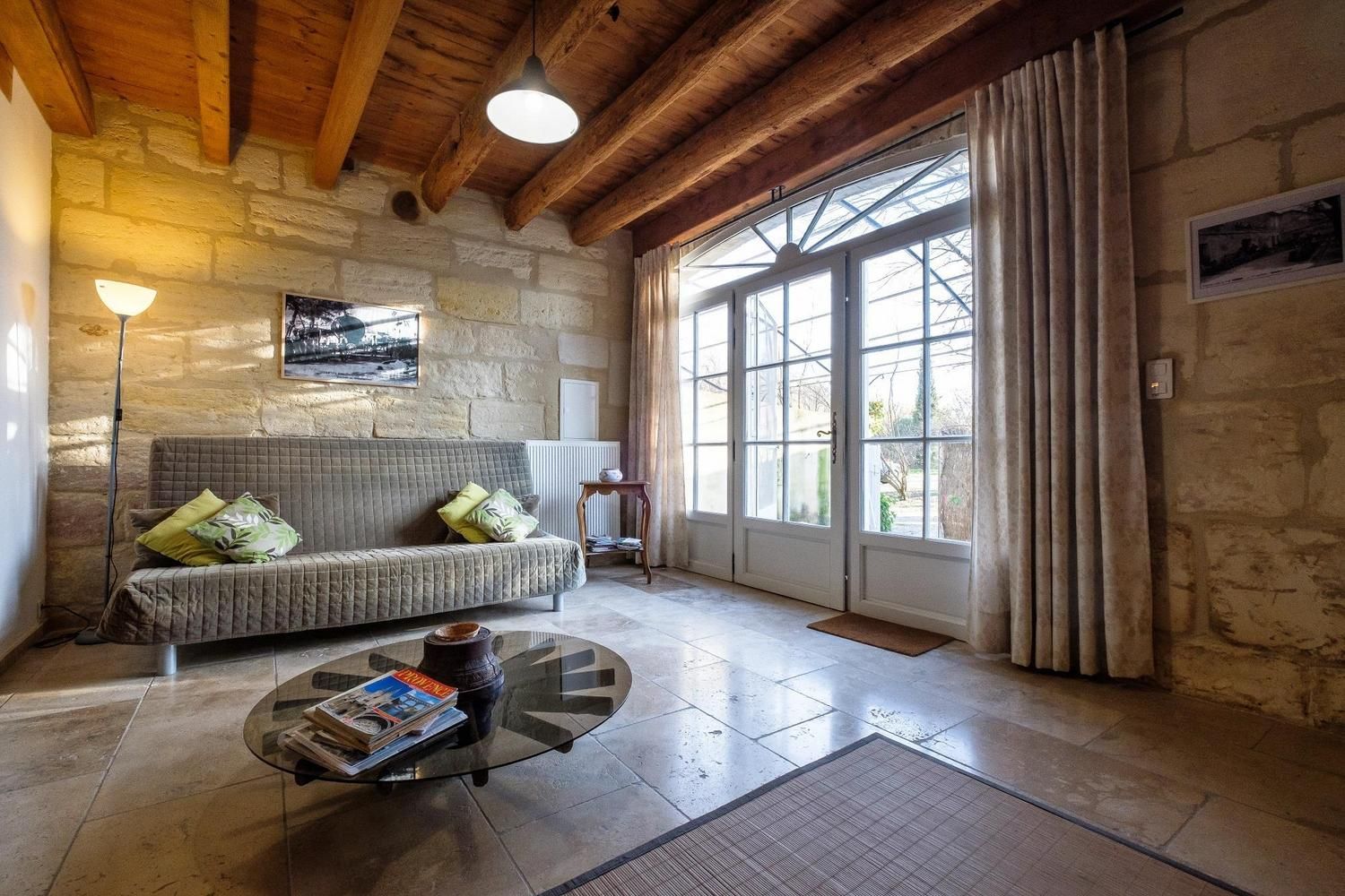 Gîte aménagé avec goût dans les dépendances d'un mas arlésien du XVIIe situé sur un domaine de 2 Ha, en campagne, au calme.