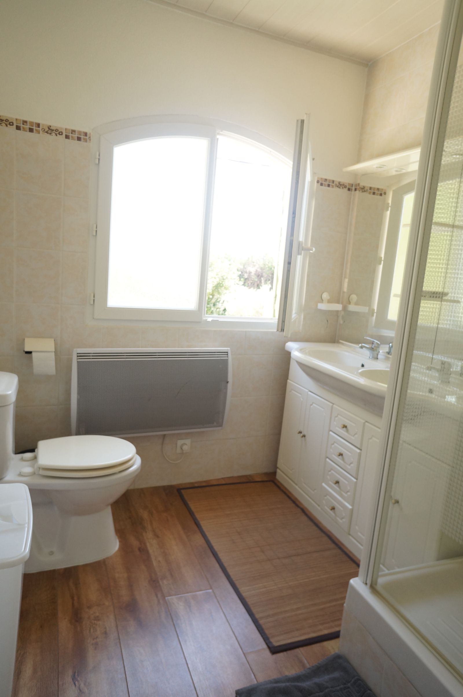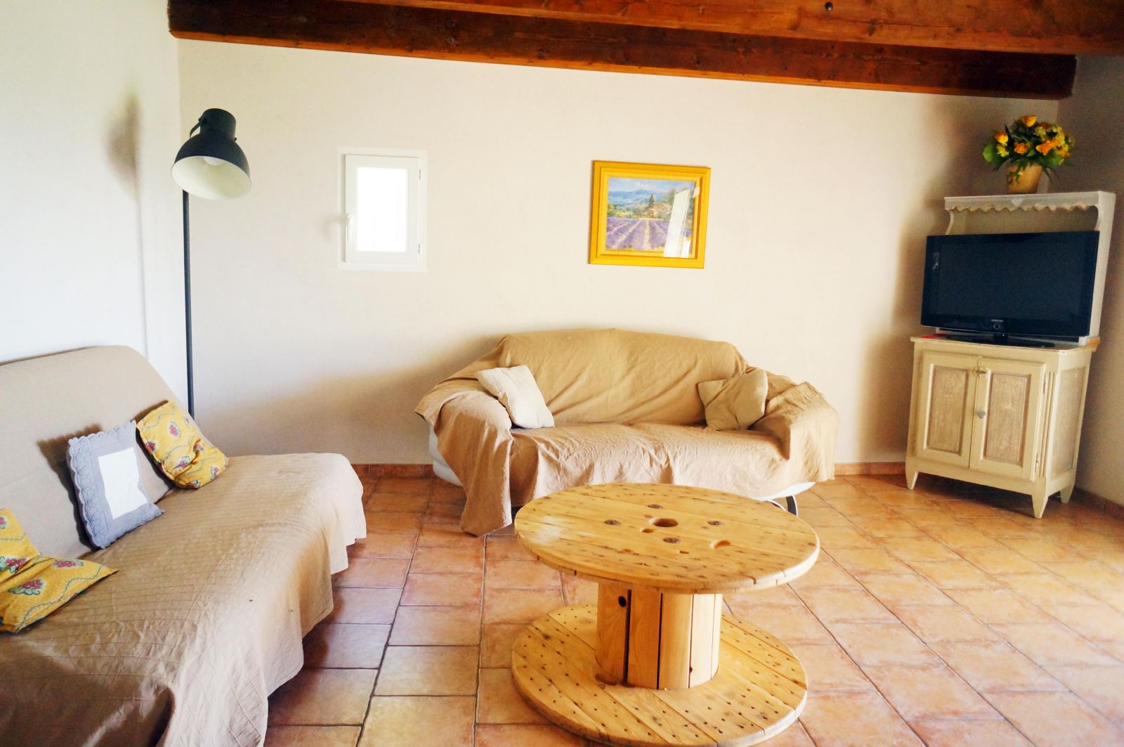 Au rez de chaussée : une cuisine-séjour; à l'étage 2 chambres; à l'extérieur : un grand jardin avec terrasse, piscine partagée (chauffée du 15/05 au 15/09)