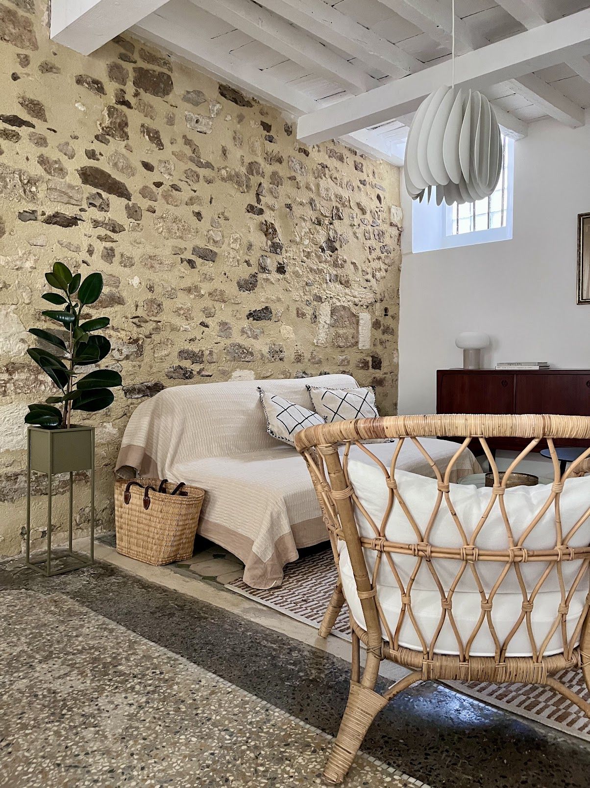 Le rez-de-chaussée est composé d'une grande pièce de vie douce et confortable avec espace salon et salle à manger.
