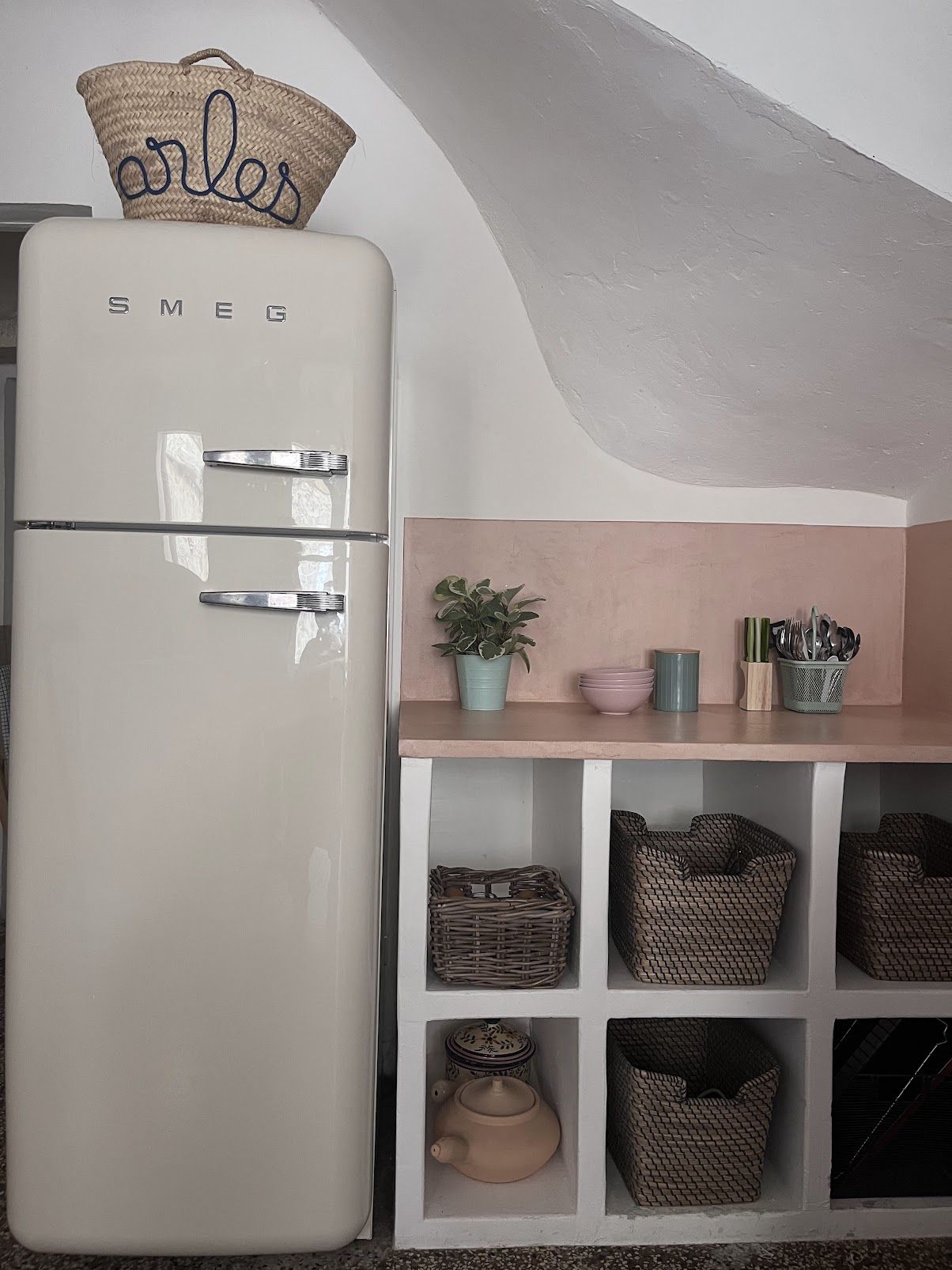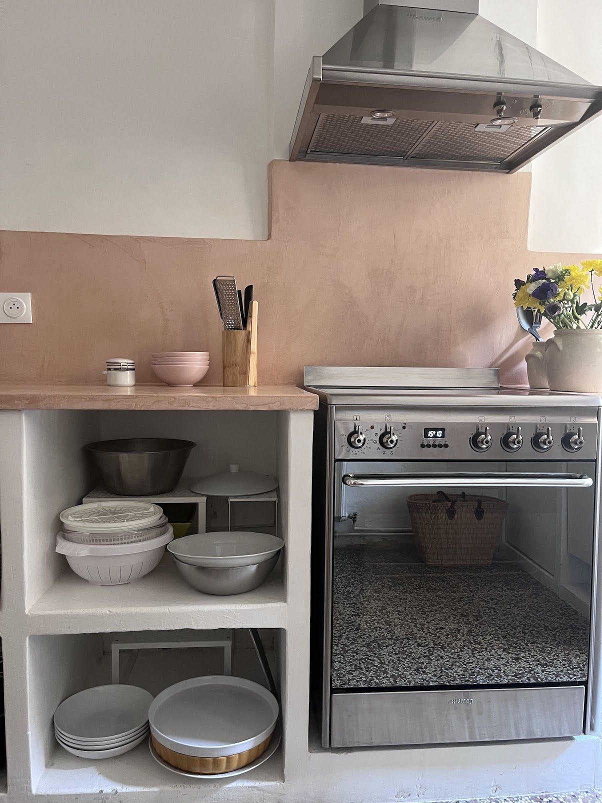 Cuisine séparée totalement équipée ouverte sur le patio fleuri et ombragé aménagé pour les repas et profiter de la douceur de vivre arlésienne.