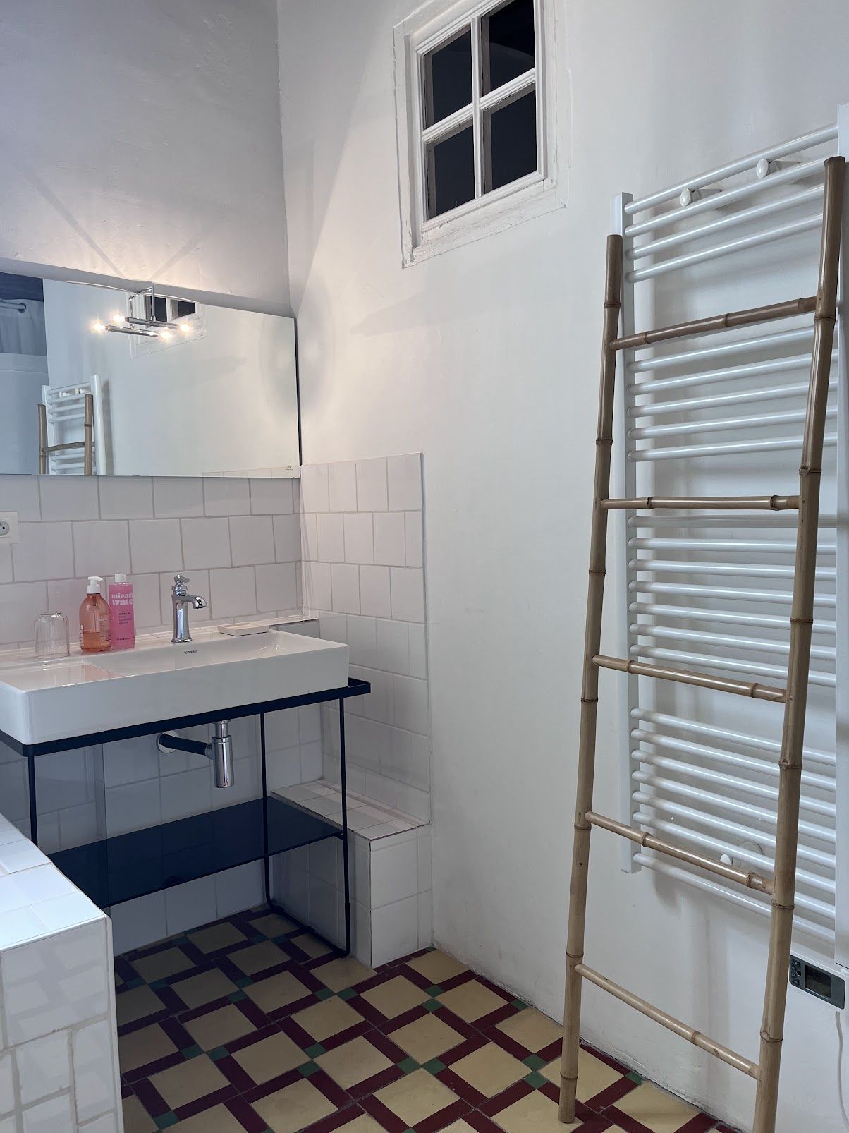 Au premier étage un charmant palier dessert deux chambres aménagées avec un grand placard pour chacune, la salle de bains avec douche italienne et baignoire, et wc - lave mains indépendant.