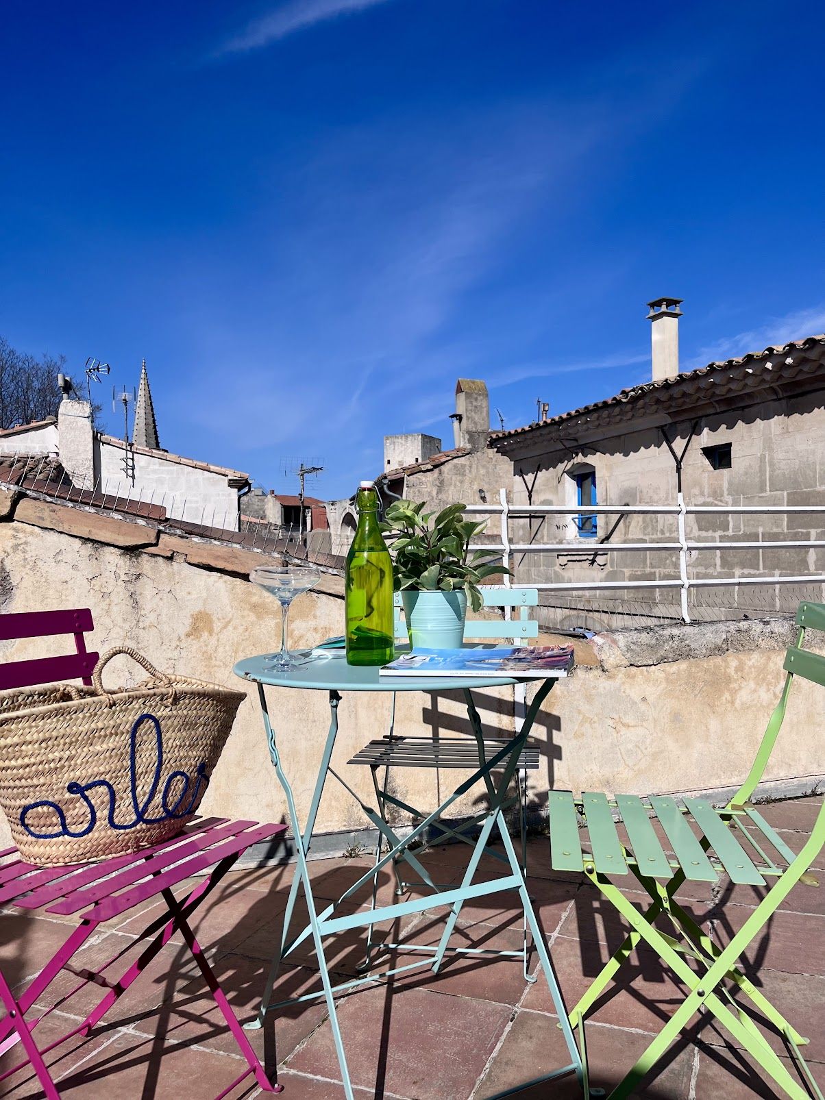 Elégante et spacieuse maison de ville arlésienne à quelques mètres des Arènes avec patio, terrasse et vue imprenable sur les toits.