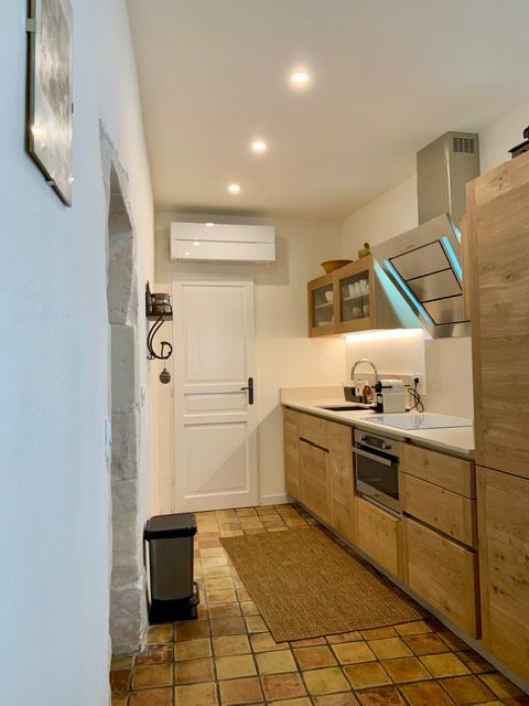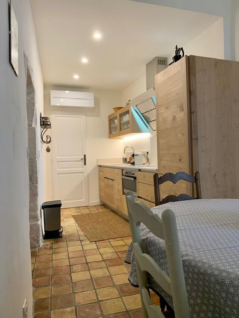 - Au rez-de-chaussée, salon avec une superbe cheminée, une cuisine toute équipée.