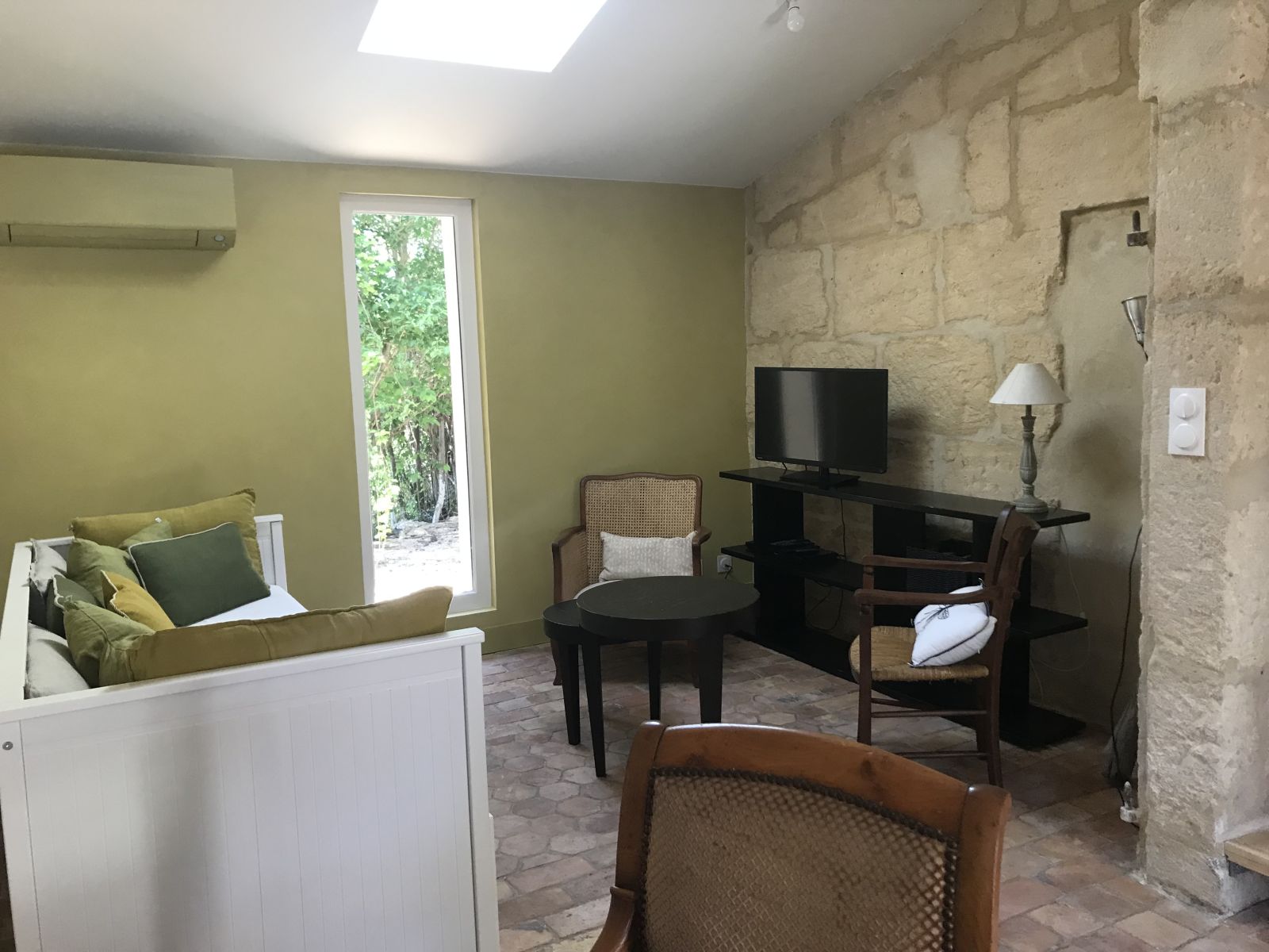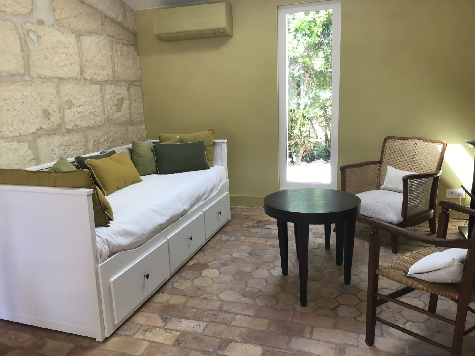 A l'étage, vous trouverez deux chambres climatisées, une salle de bain avec douche italienne, vasque en pierre et WC. Votre bébé aussi sera le bienvenu, puisque vous disposerez de lit parapluie, chaise haute, et d'autres matériels dédiés sur demande lors de votre réservation.
