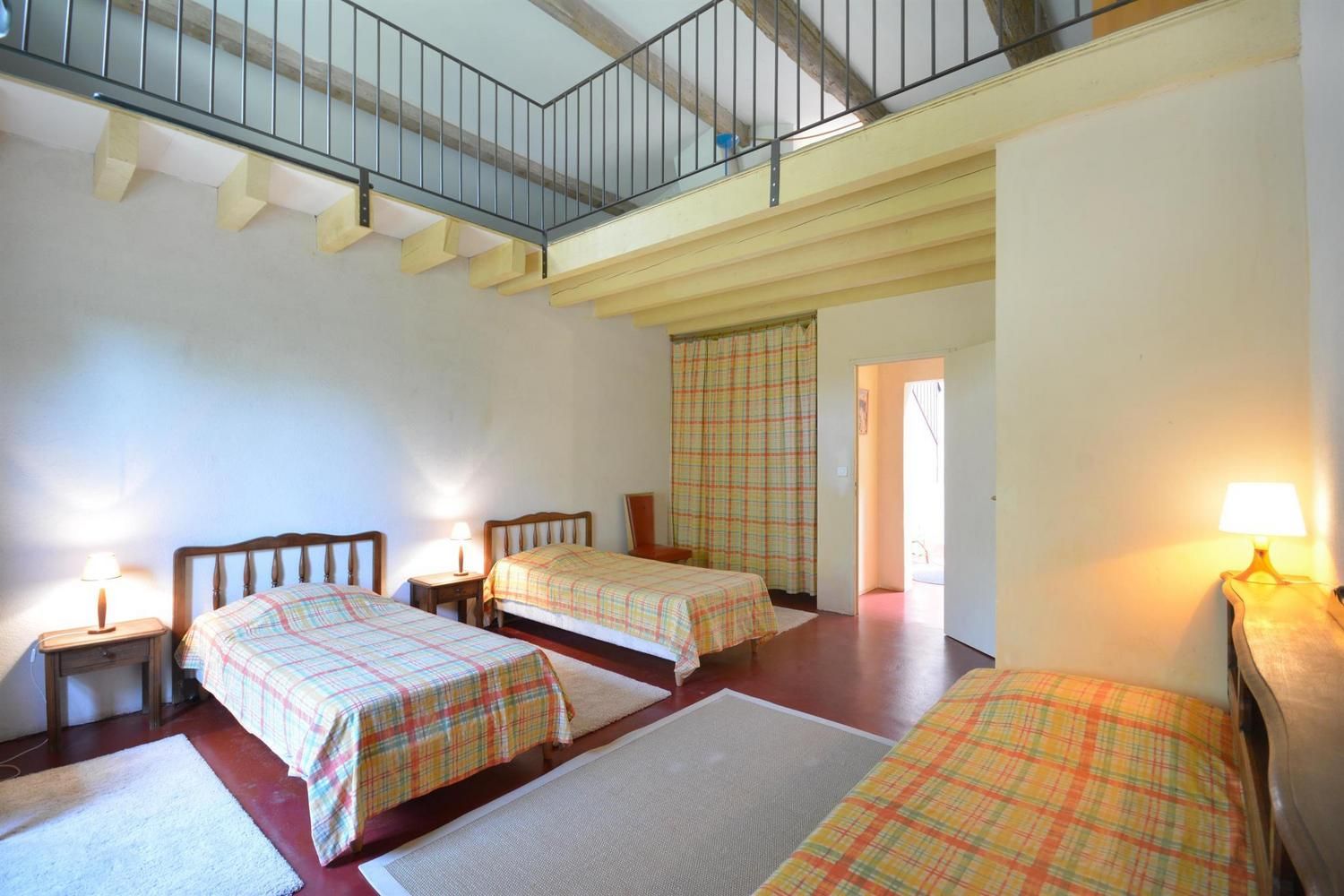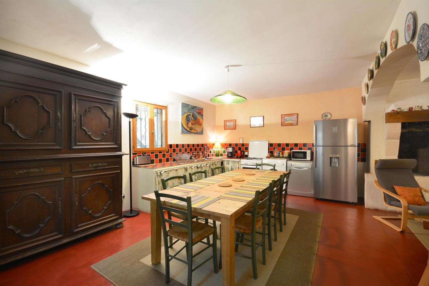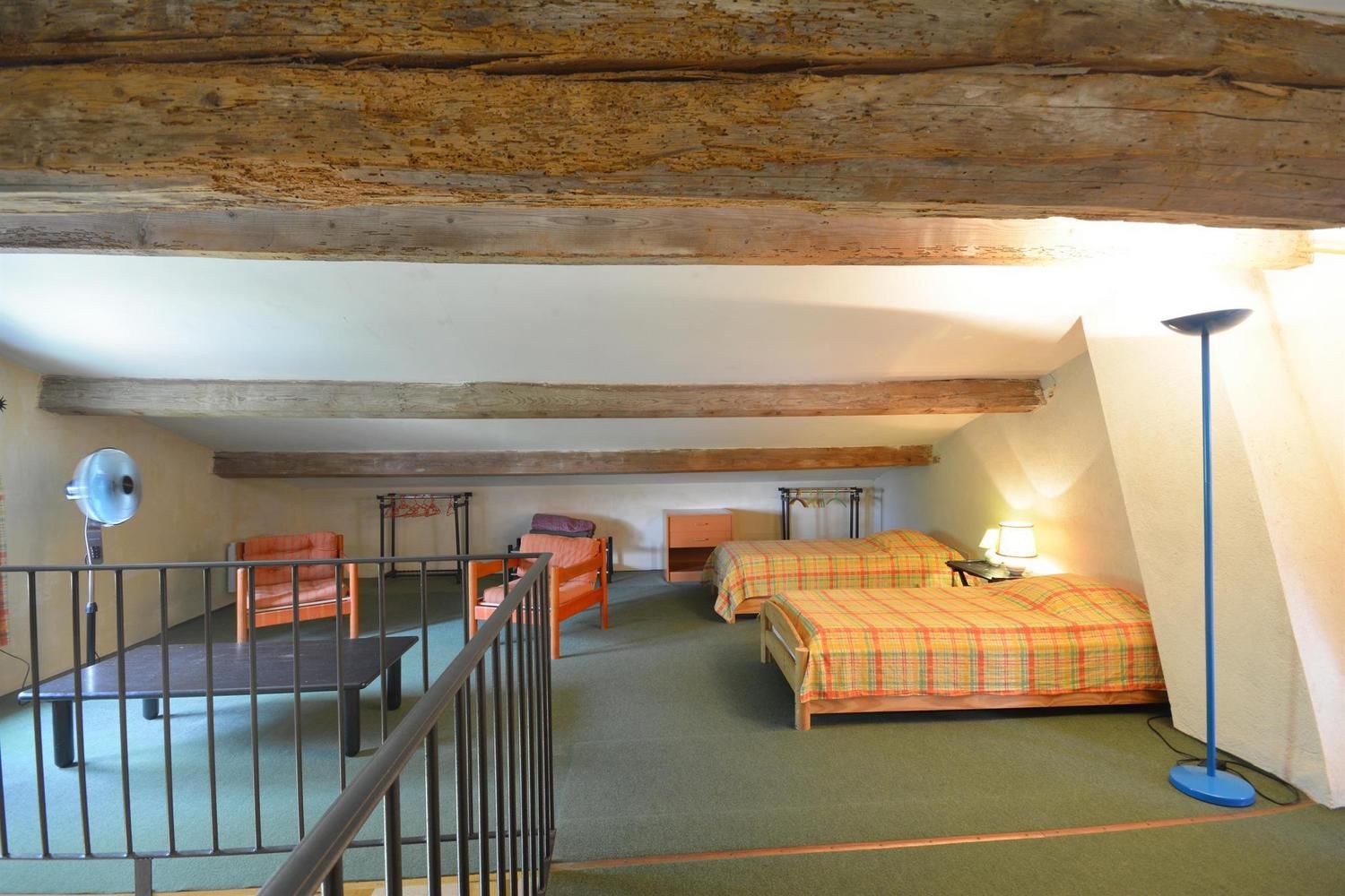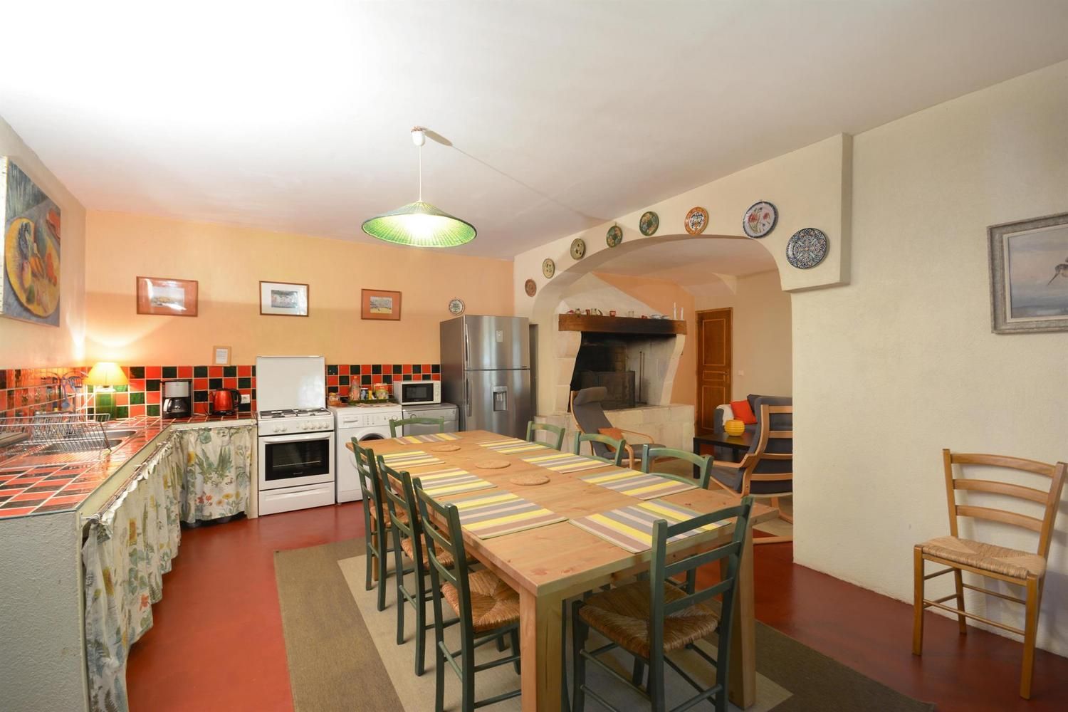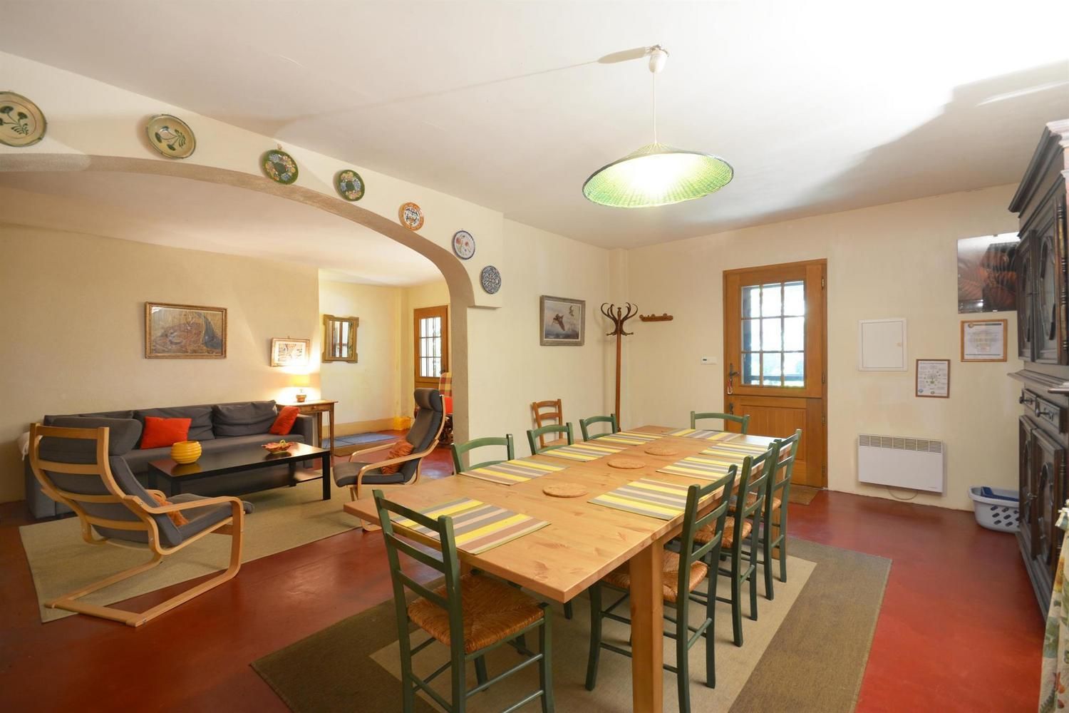 Beaux espaces extérieurs individuels. Au rez-de-chaussée : grande pièce de vie avec salon (canapé convertible, fauteuils, table basse, TV écran plat, cheminée 20EUR le 1/4 de stère), cuisine (cuisinière avec plaque 3 feux gaz et 1 électrique, four, lave-linge, lave-vaisselle, micro-ondes, réfrigérateur/congélateur grande capacité avec distributeur d'eau), espace repas pour 10. WC indépendant. A l'étage : 2 chambres avec 1 lit 2 personnes 140x190cm. 1 chambre avec 3 lits 1 personne 90x190cm, avec mezzanine offrant elle-même 3 lits 1 personne 90x190cm. Salle d'eau avec douche et salle de bain avec baignoire. WC indépendants. Jardin commun d'environ 1 hectare avec portique, toboggan, table de ping-pong et trampoline. Espace privatif de 50 m² avec terrasse de 12 m², salon de jardin et barbecue. Parking sur la propriété. Garage possible pour vélos. Ménage sur demande (50EUR). Chauffage électrique. Moustiquaires aux portes et fenêtres.