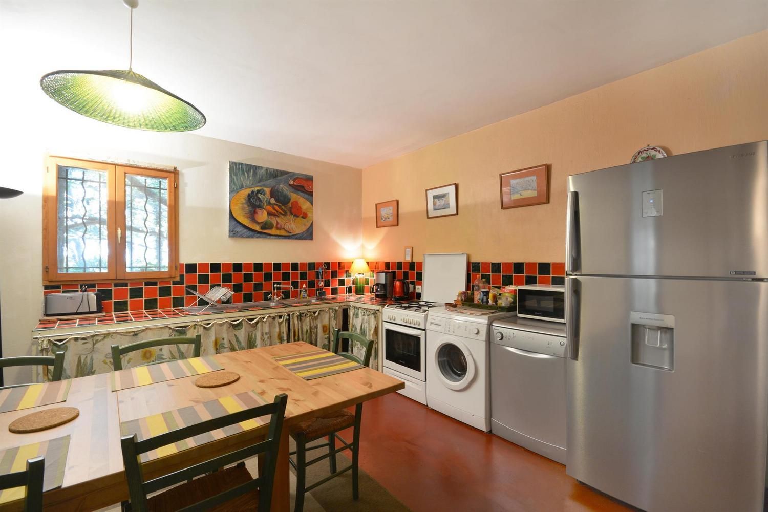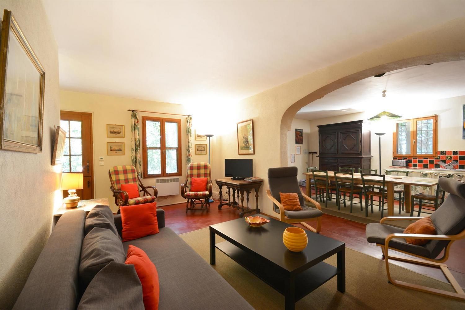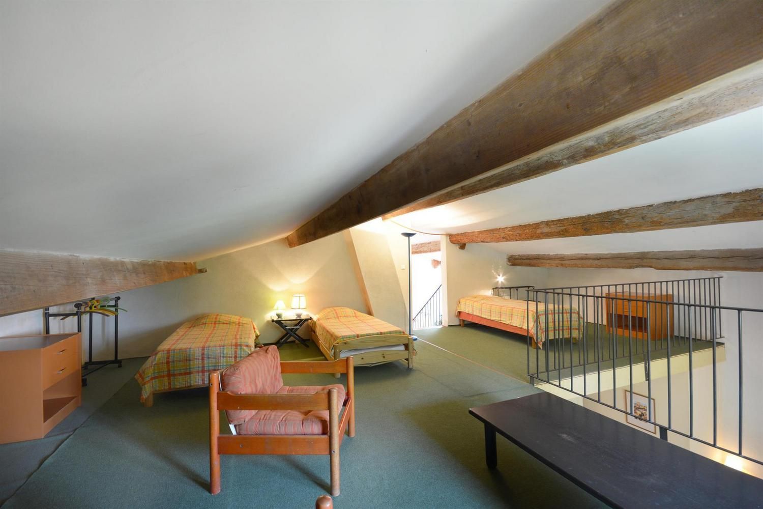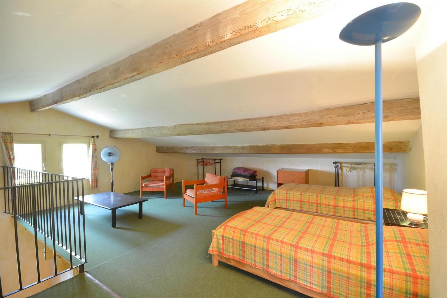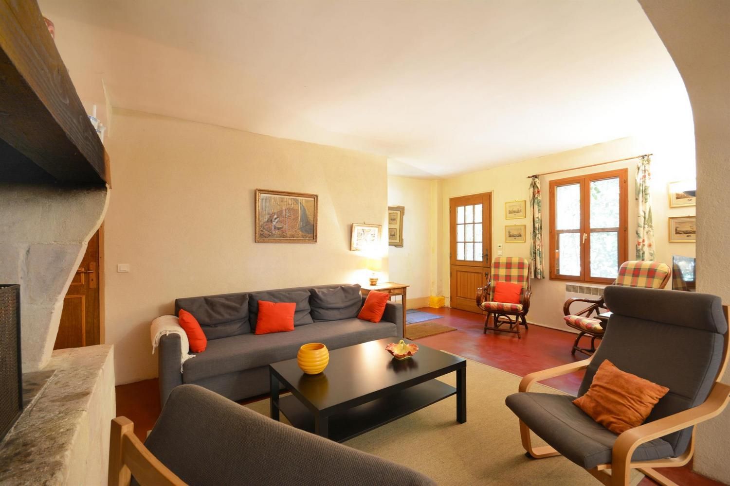 Beaux espaces extérieurs individuels. Au rez-de-chaussée : grande pièce de vie avec salon (canapé convertible, fauteuils, table basse, TV écran plat, cheminée 20EUR le 1/4 de stère), cuisine (cuisinière avec plaque 3 feux gaz et 1 électrique, four, lave-linge, lave-vaisselle, micro-ondes, réfrigérateur/congélateur grande capacité avec distributeur d'eau), espace repas pour 10. WC indépendant. A l'étage : 2 chambres avec 1 lit 2 personnes 140x190cm. 1 chambre avec 3 lits 1 personne 90x190cm, avec mezzanine offrant elle-même 3 lits 1 personne 90x190cm. Salle d'eau avec douche et salle de bain avec baignoire. WC indépendants. Jardin commun d'environ 1 hectare avec portique, toboggan, table de ping-pong et trampoline. Espace privatif de 50 m² avec terrasse de 12 m², salon de jardin et barbecue. Parking sur la propriété. Garage possible pour vélos. Ménage sur demande (50EUR). Chauffage électrique. Moustiquaires aux portes et fenêtres.