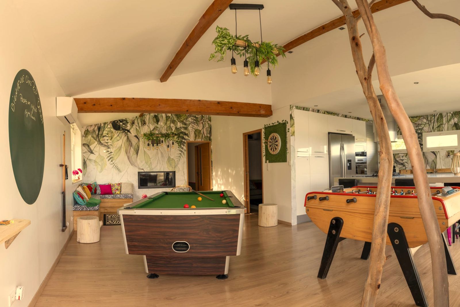 Jacuzzi ( voir conditions), piscine,billard, baby, fléchette, salle Tv et console ,terrasse, wifi, clim, parking