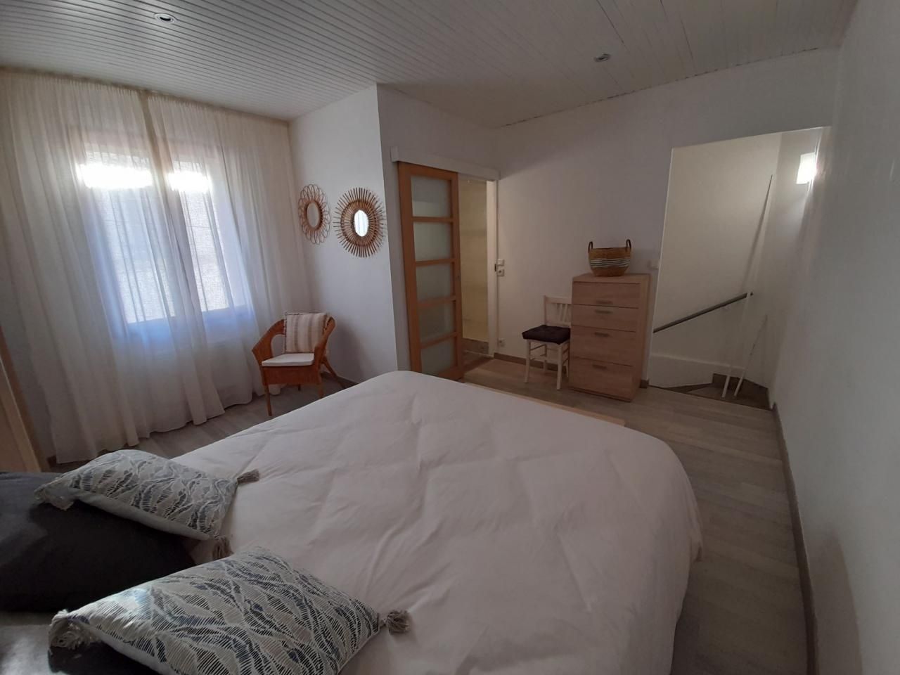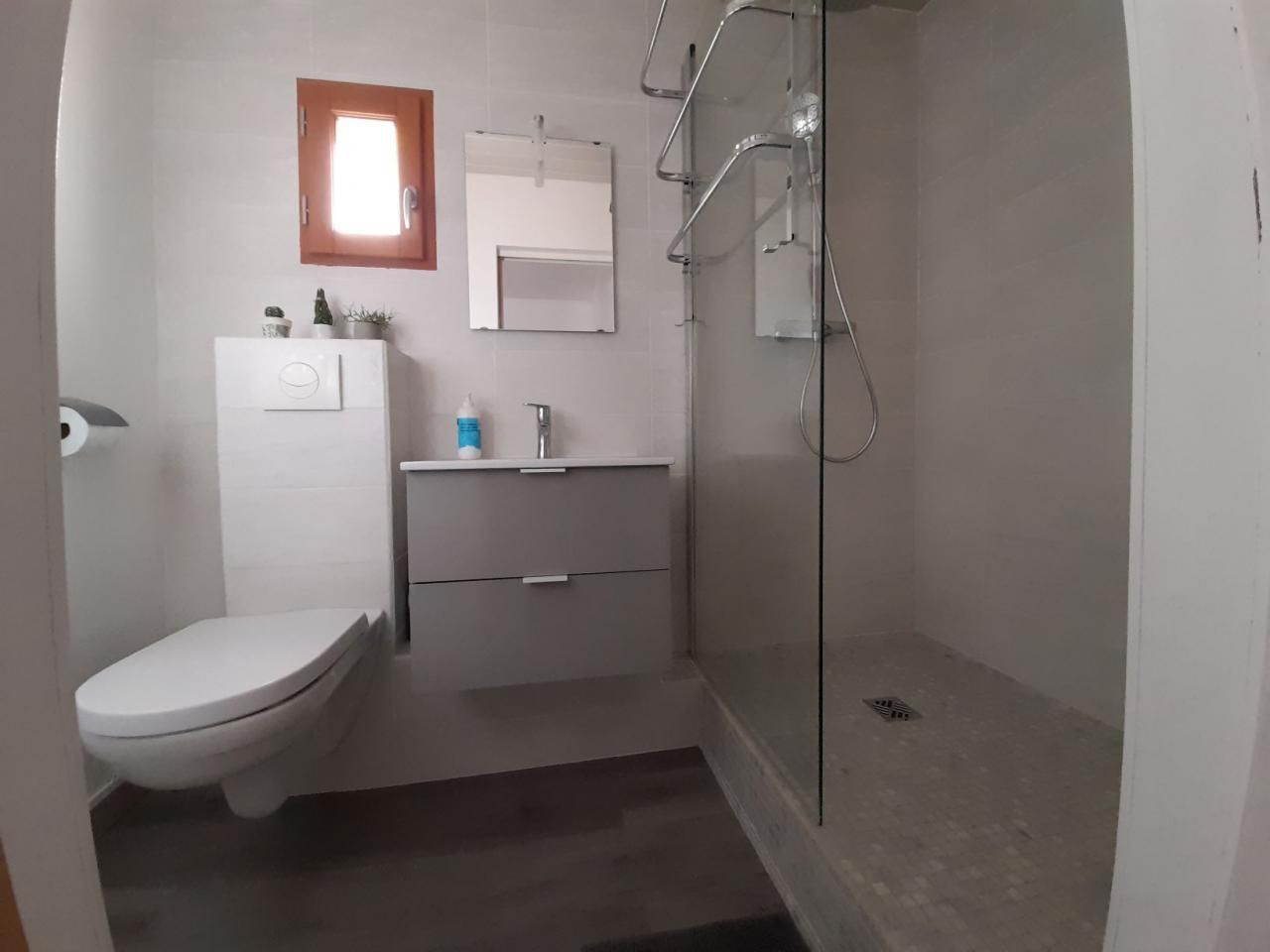 A l'étage : chambre avec lit en 160, armoire penderie, commode, salle d'eau avec WC, douche à l'italienne et lavabo.
