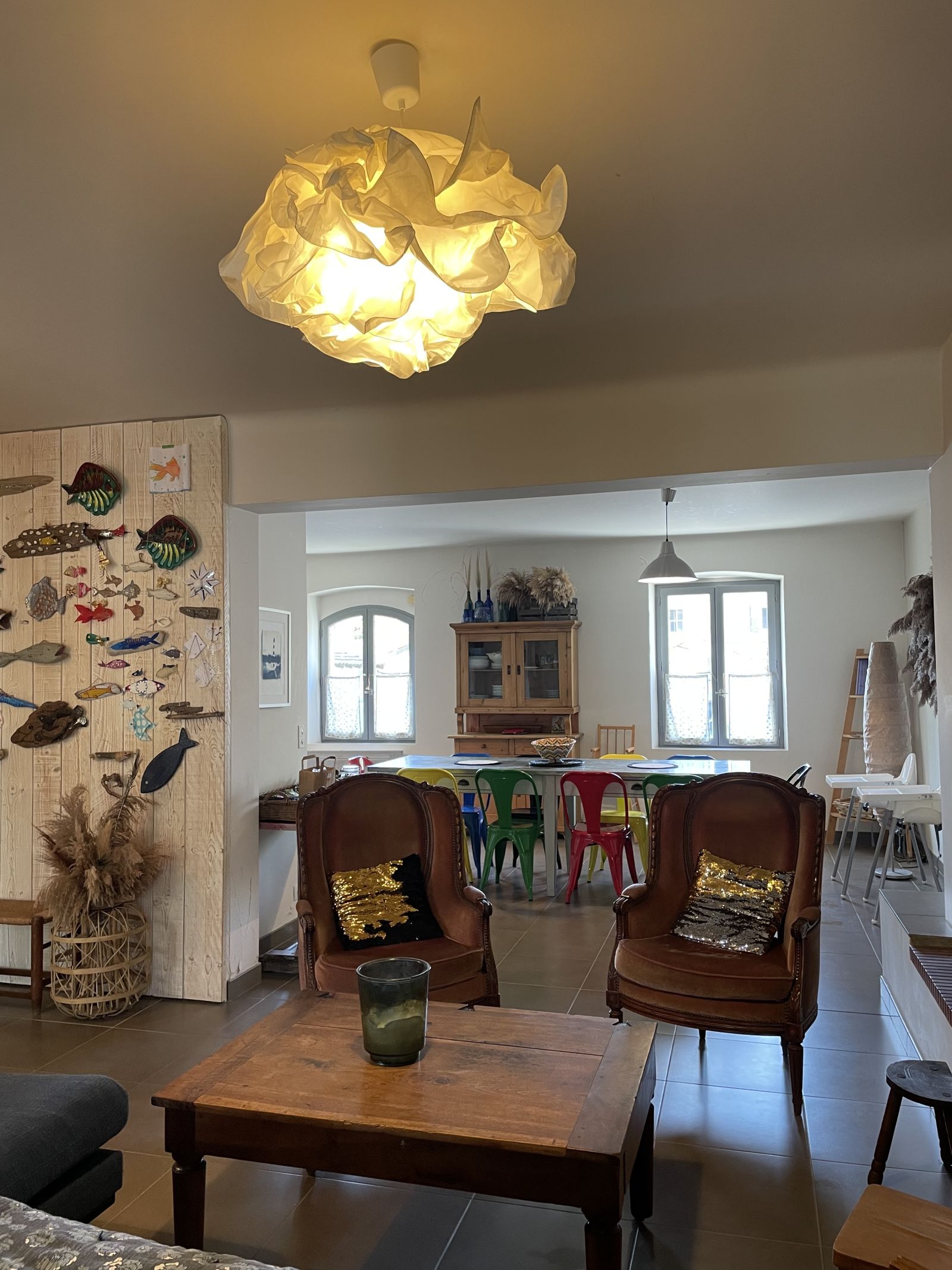 - Un espace repas avec une grande table familiale,