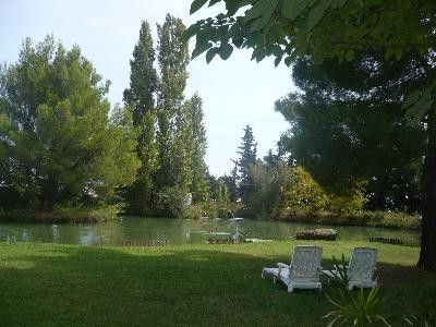 Terrasse ombrée ( salon jardin . A 150m accès plan d'eau tortue et poissons font le bonheur des petits et grands .