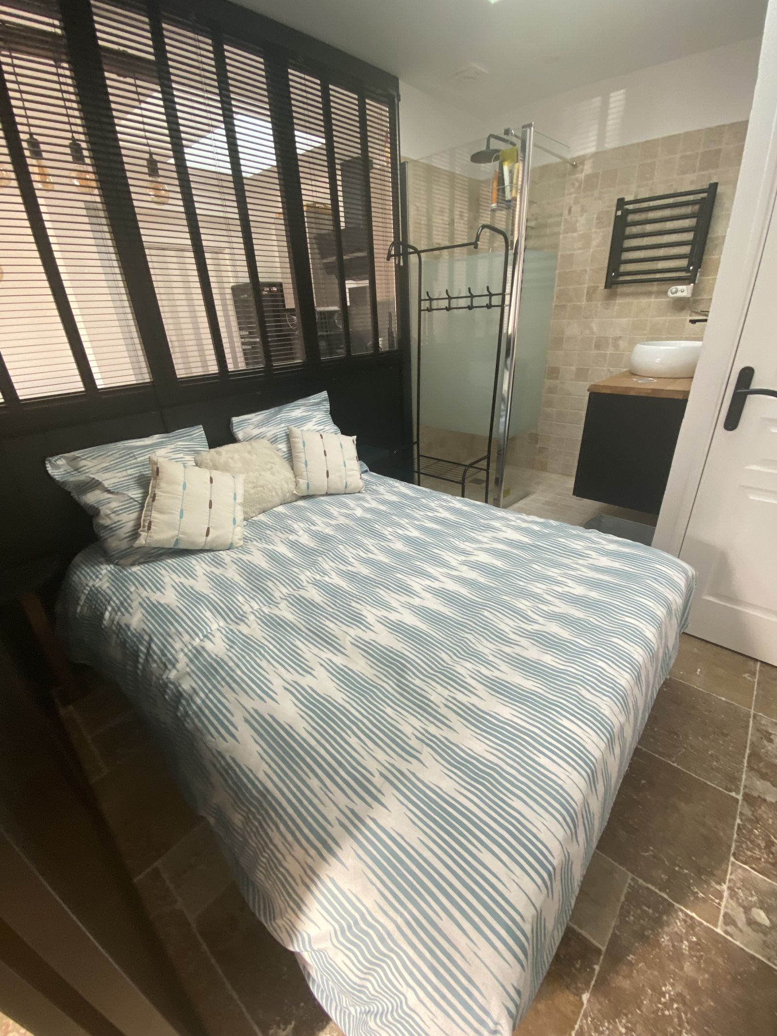 Une chambre avec 1 GL 140, une salle d'eau avec une grande douche à l'italienne, toilettes séparés.