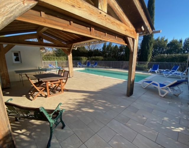 Équipements communs : piscine (11 x 4m, profondeur max 1,5m, accessible du 01/05 au 15/10 de 10h à 21h), terrain de pétanque, aire de jeux pour enfants (trampoline, cabane de jeux, toboggan, portique...) et table de ping-pong.