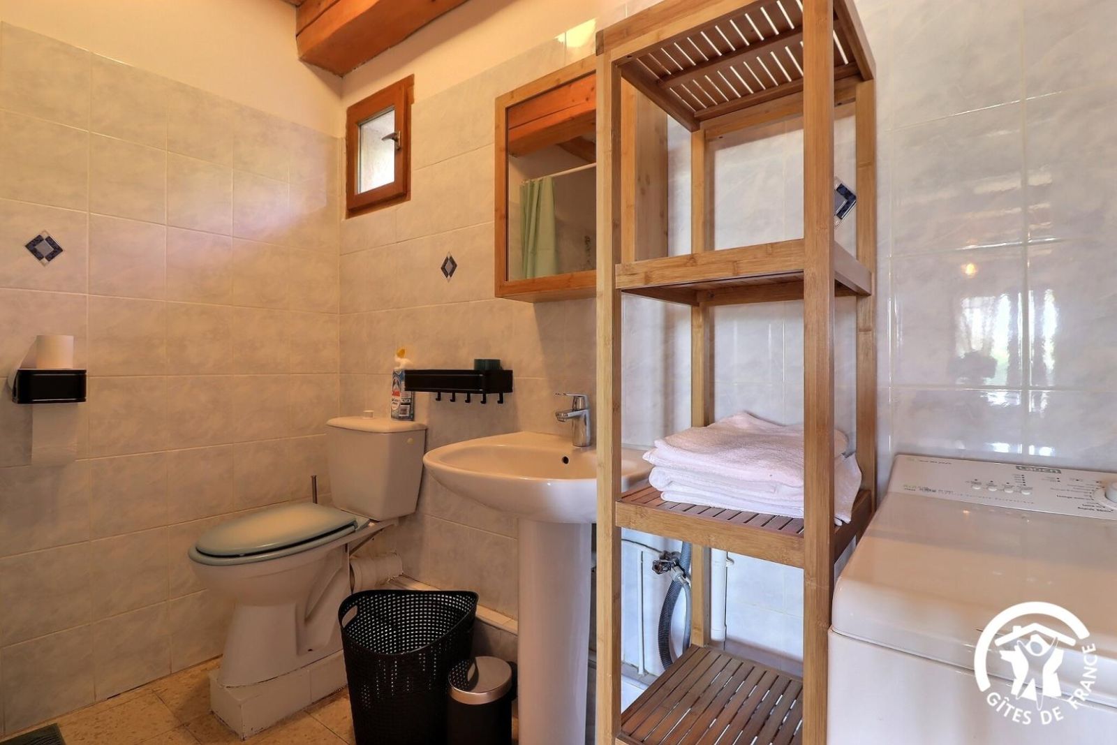 - Une salle d'eau avec douche 80x80cm avec rideau de douche, vasque, lave-linge et WC.