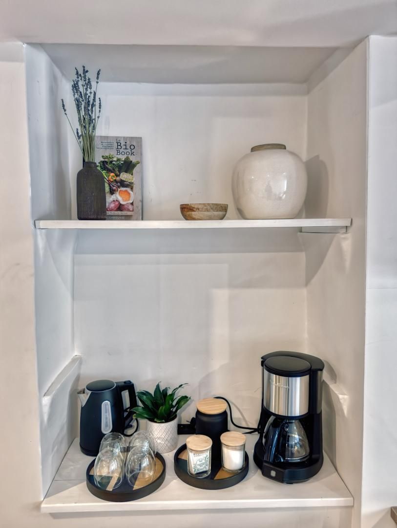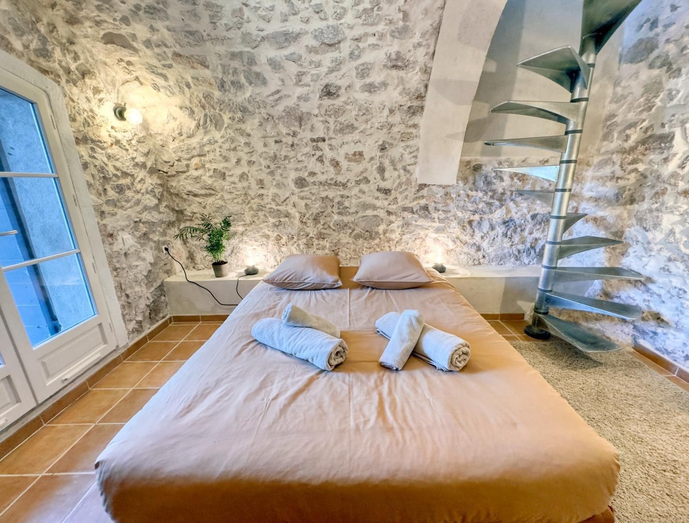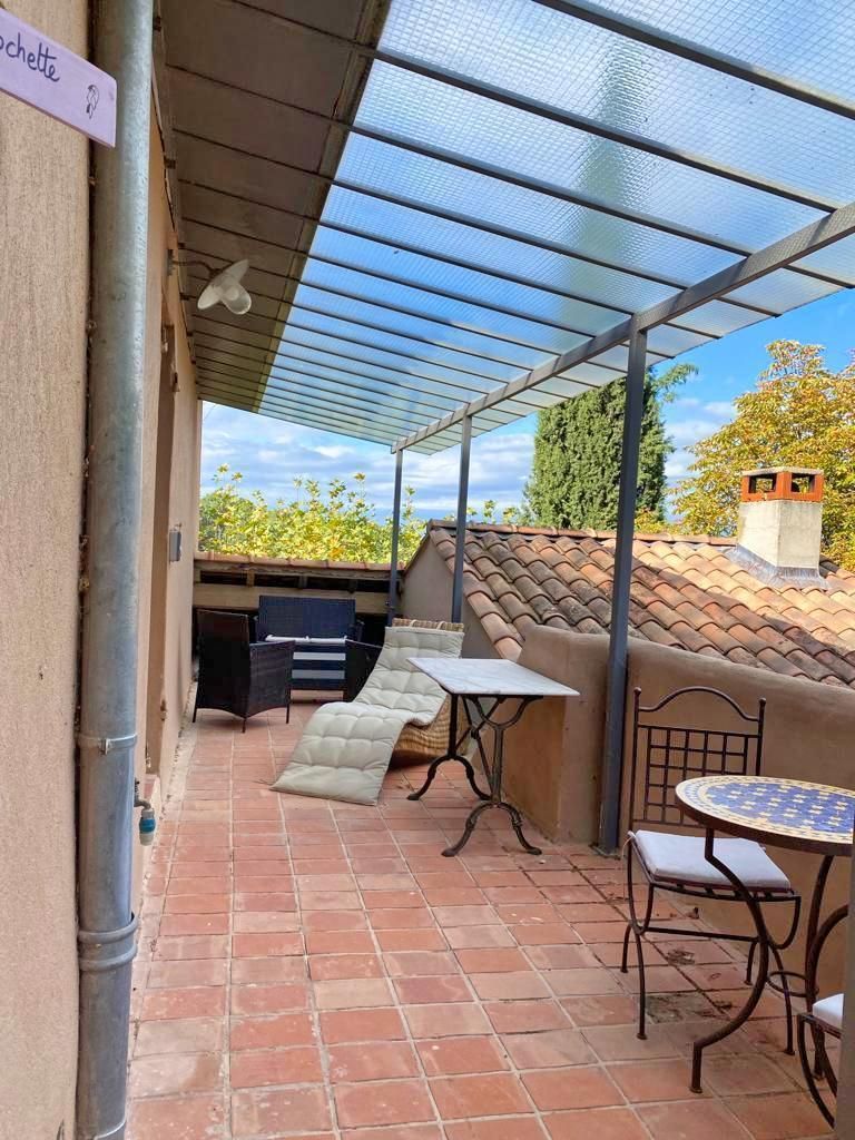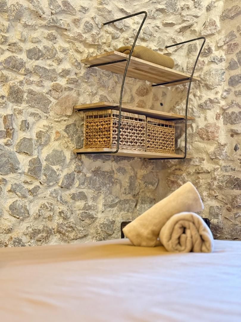 - une chambre 2 personnes dans laquelle se trouve la salle d'eau avec douche et WC - une grande chambre de charme voûtée en pierre avec lit 160x200cm (accessible par un escalier en colimaçon ou par l'extérieur). Terrasse privative couverte avec salon de jardin et transats. Jardin commun avec espace privatif. Chauffage central inclus - lit et chaise bébé sur demande - draps et linge sur demande - Wi-fi Un endroit enchanteur dans la verdure.. Vous pourrez partir à pied sur les sentiers qui serpentent dans la Ste Baume, et même rejoindre à pied Aubagne si vous vous en sentez le courage !!