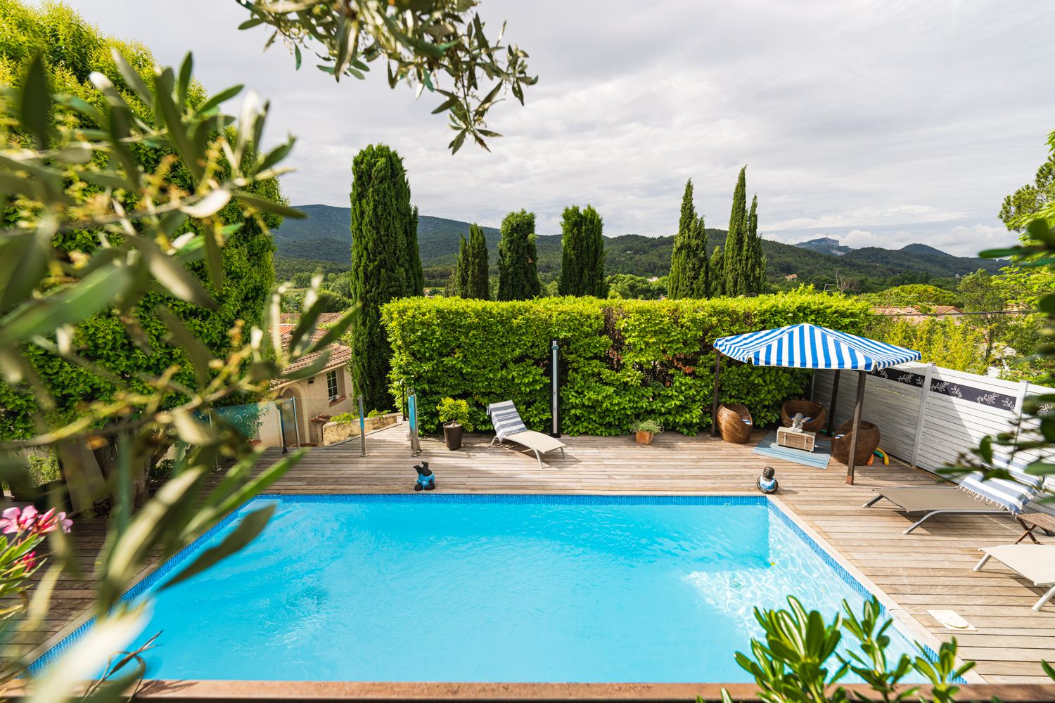Nichée dans un jardin en restanque planté d’essences méditerranéennes variées, la maison L'Ensoleillado est un véritable cocon pour un séjour en Provence. Des rives de la piscine traitée au sel, admirez la vue sur le bois de la Lare et la montagne de la Sainte Baume. Dans un autre coin du jardin, un sauna vous attend aussi. Quant à la maison en elle-même, d’une capacité d’accueil de 4 personnes, elle présente une décoration raffinée à laquelle Emmanuelle, votre hôtesse, a apporté sa touche. Pour vous permettre de profiter au mieux de votre séjour, elle a préparé un guide touristique avec ses meilleures adresses. Qu'elles soient culturelles ou sportives, les propositions d’excursions abondent.