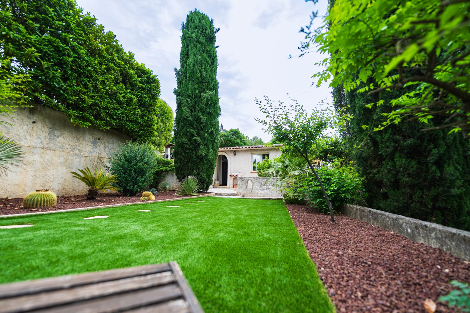 Une maison harmonieuse et climatisée de 50 m² vous attend avec son jardin en restanques, les pieds dans la piscine ou pour un moment de bien être avec son sauna.