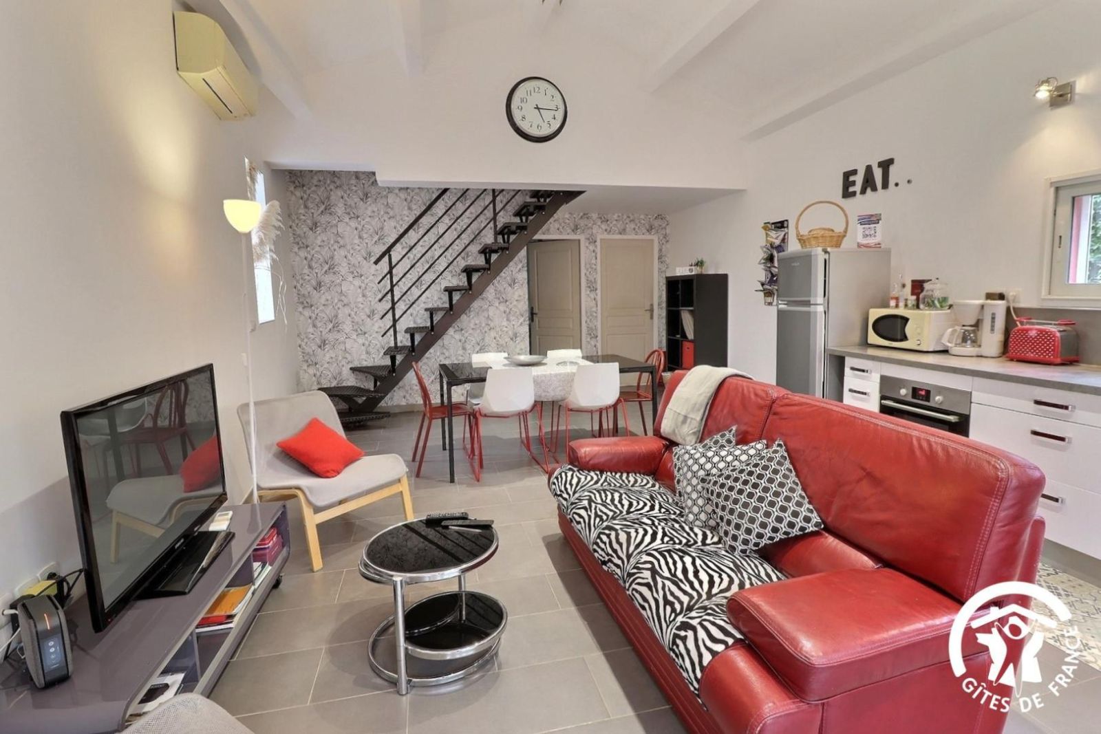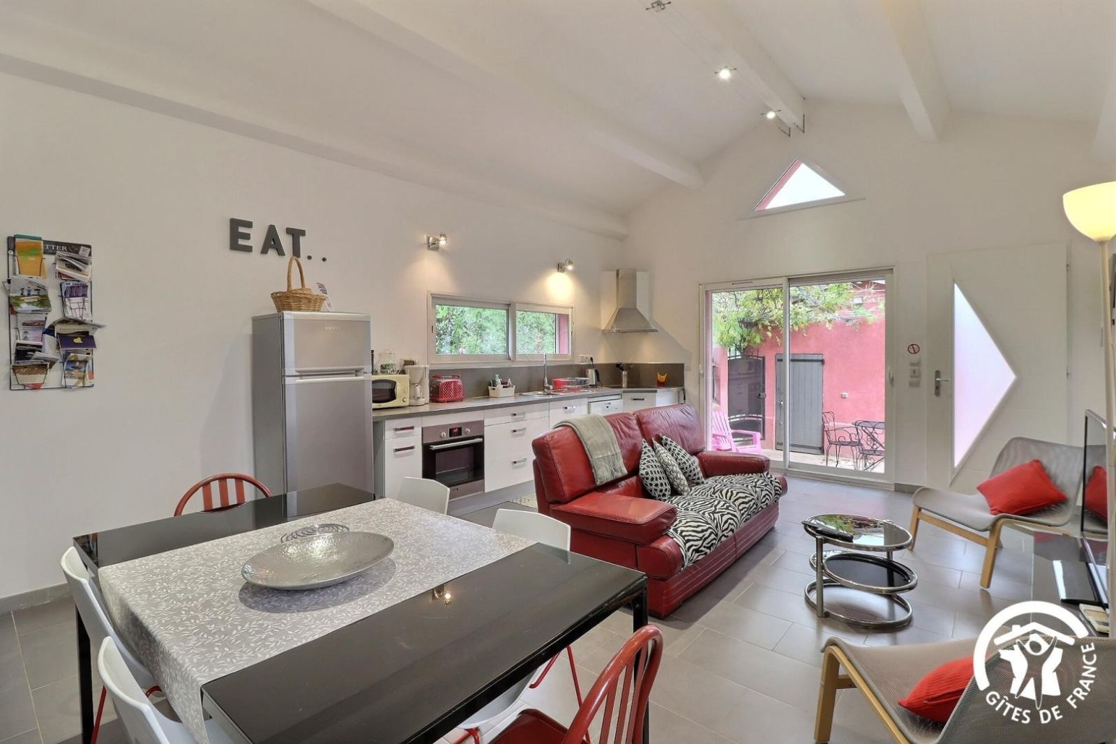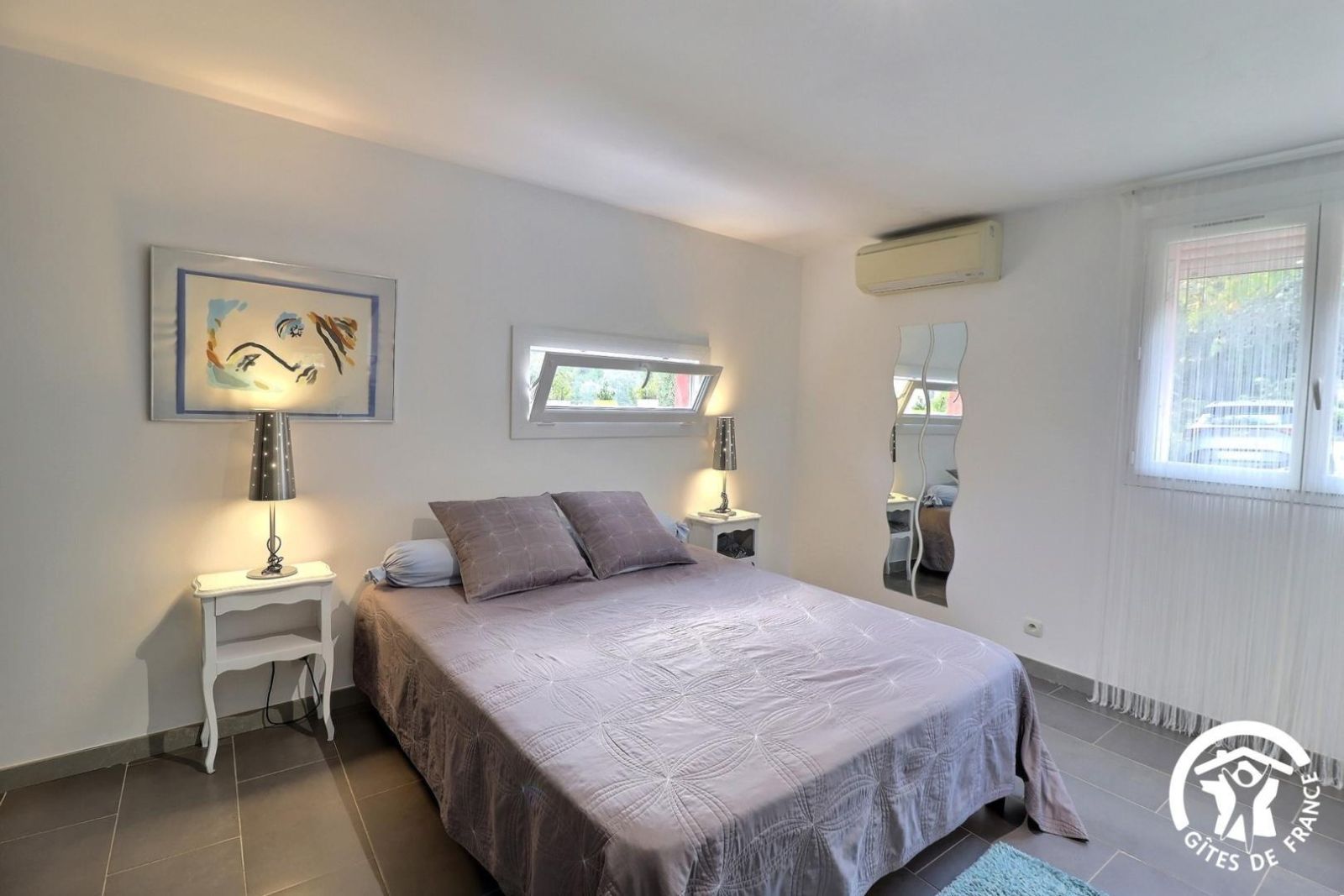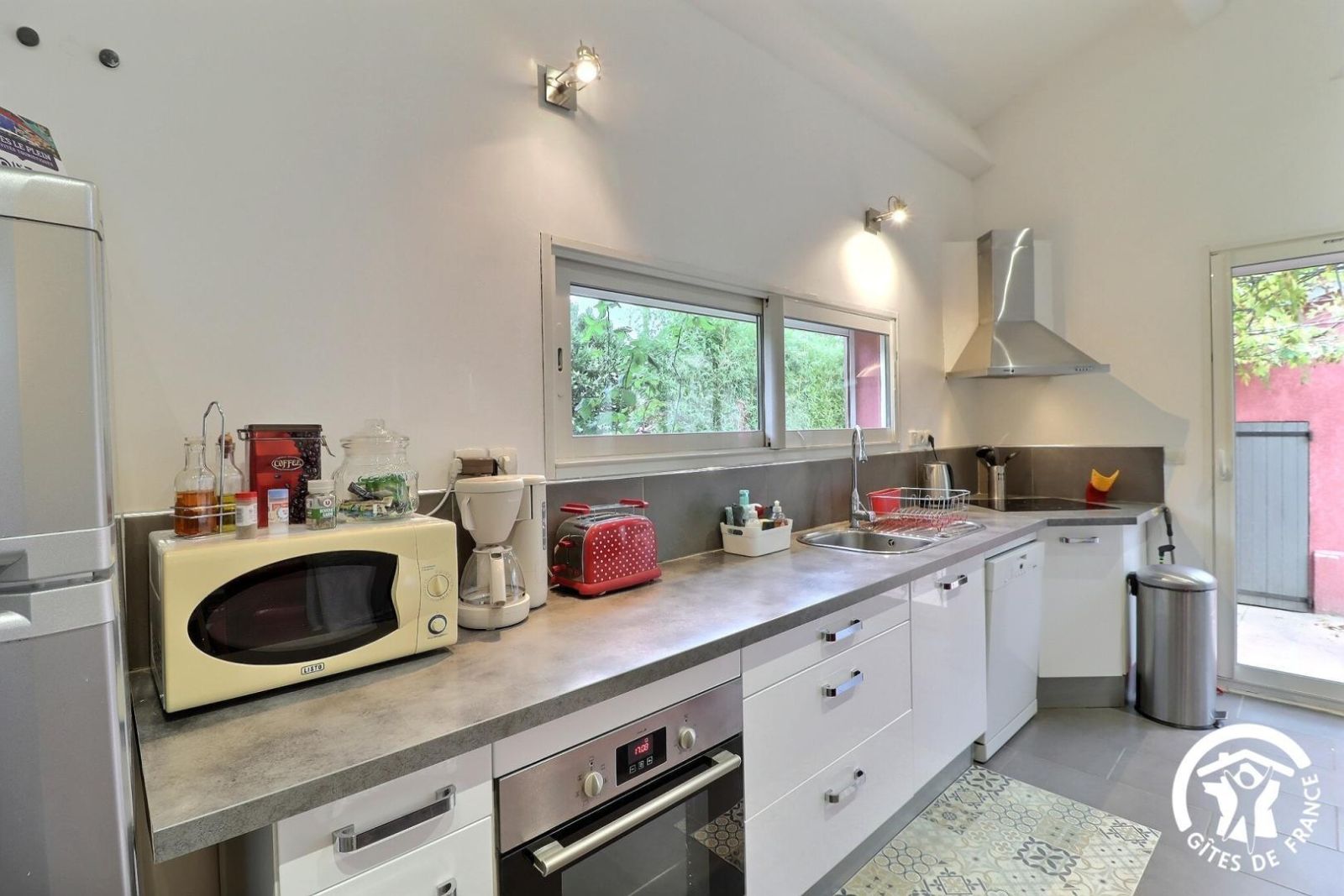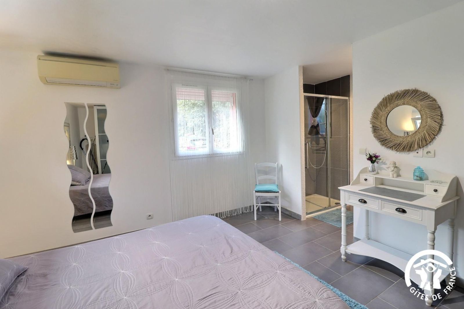 A proximité du village d'Auriol, entre Calanques et Sainte Baume, gîte indépendant sur terrain clos. Bien aménagé et lumineux, il ouvre sur sa terrasse privative et son petit coin jardin (40 m² au total). Rez de chaussée : vaste séjour avec coin repas et cuisine intégrée (lave vaisselle, four, micro-ondes et plaques induction), coin détente avec télévision écran plat 110cm avec chaînes Freebox. Une chambre avec 1 lit 2 personnes 160x200cm avec salle d'eau privative (douche à l'italienne 80x110cm). Wc indépendant. A l'étage : chambre avec 2 lits 1 personne 90x190cm, salle d'eau privative avec douche 90x90cm, wc + 2 lits gigognes d'appoint pour 2 personnes supplémentaires (gratuit jusqu'à 18 ans / au-delà supplément). Accès wi-fi, piscine clôturée commune avec les propriétaires (4.5 x 8 m, profondeur de 1.30 à 2m) ouverte de mai à septembre accessible de 9h à 20h. Garage privatif (lave linge). Climatisation réversible (consommation réelle > 8 kwh/jour inclus). Ménage sur demande. Draps, serviettes et linge de maison offerts en juillet et août, en location le reste de l'année. Chiens de petite taille acceptés avec supplément. Ce gîte est parfaitement adapté aux amateurs de calme, tout en permettant de bénéficier de la proximité de la mer, des grands centres touristiques, des commerces, des sentiers de randonnée ou des petites routes pour faire du vélo...