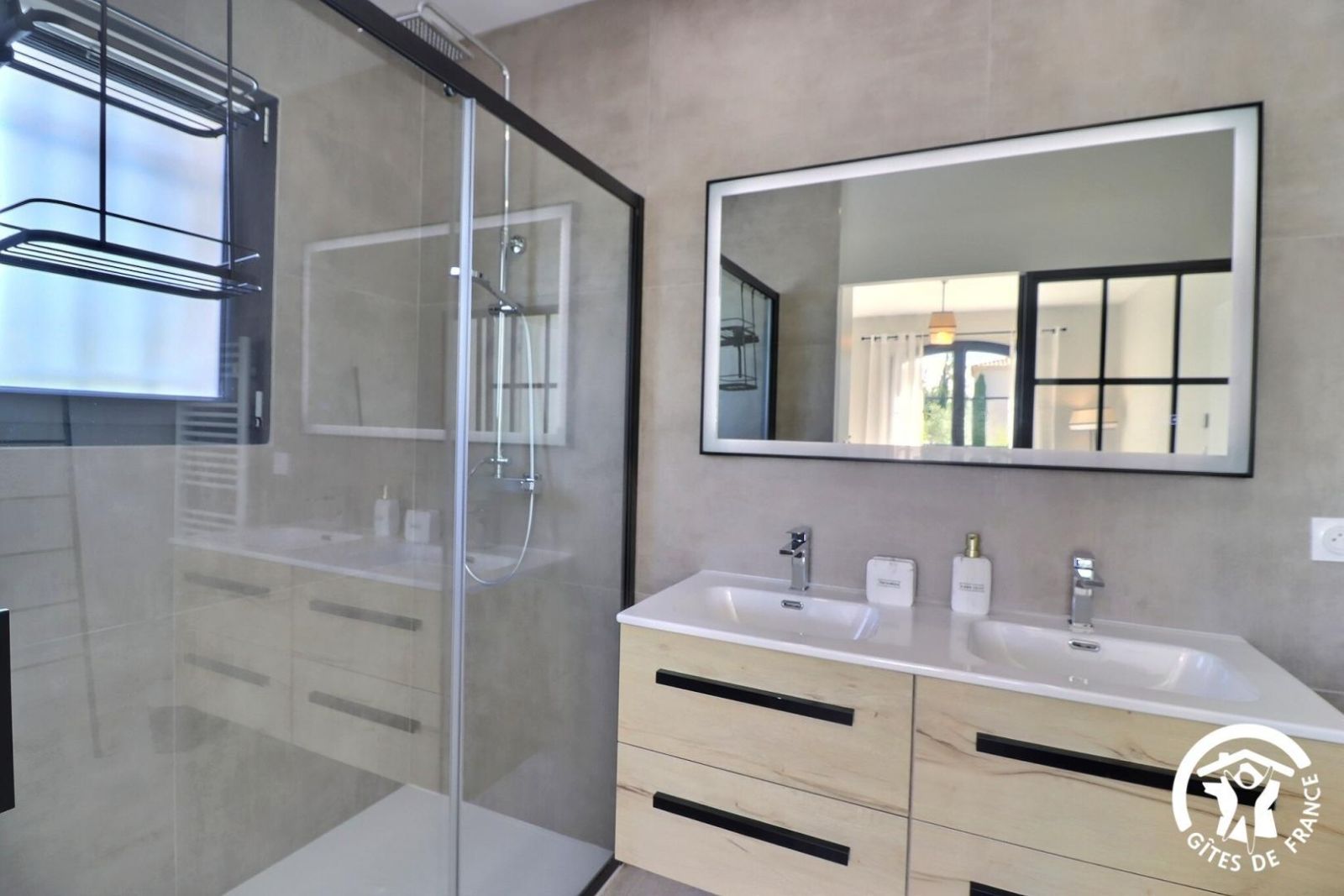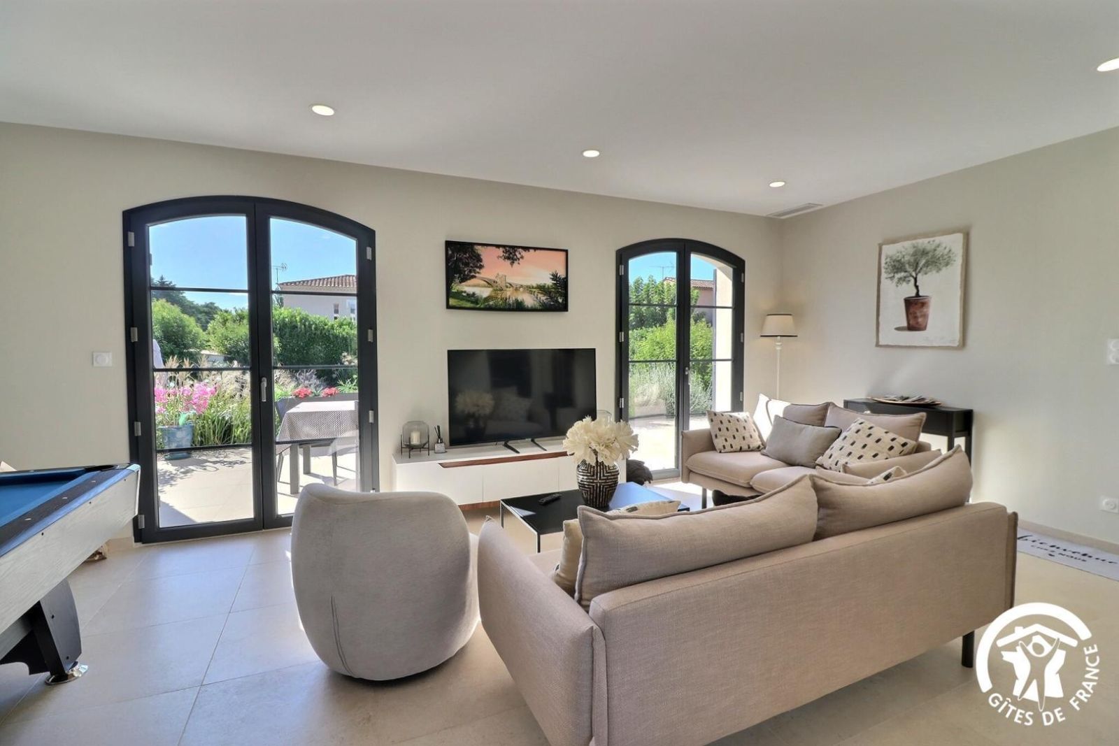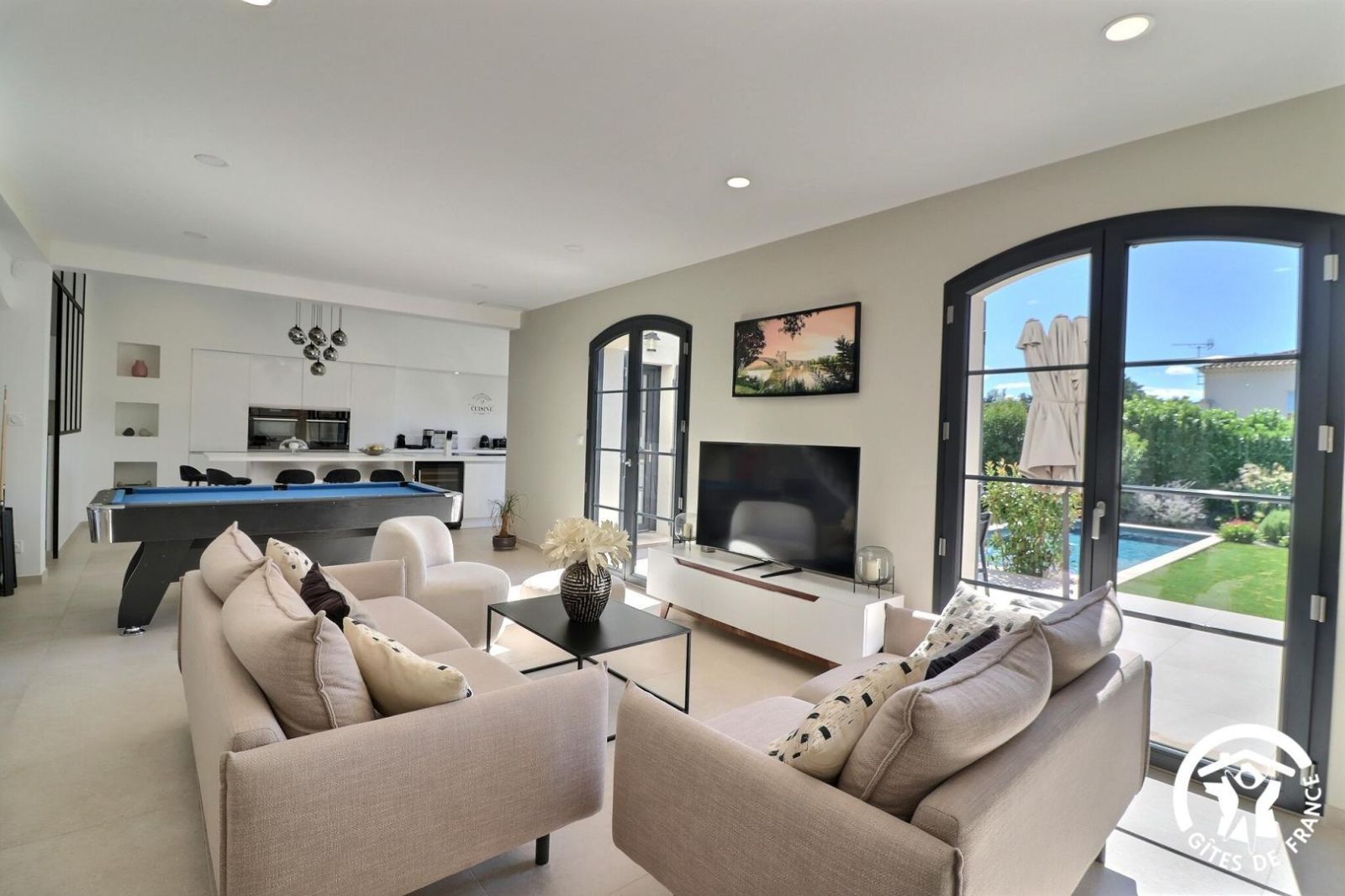 Villa moderne et lumineuse laissant entrer beaucoup de lumière naturelle. Vous trouverez une table de billard, piscine et conforts.