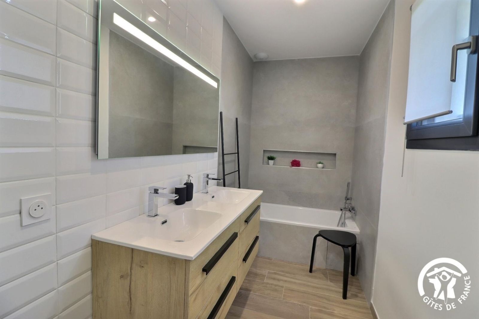 Elle possède 4 chambres avec 3 salles de bains, dont une au rez-de-chaussée, le reste se trouve à l’étage.