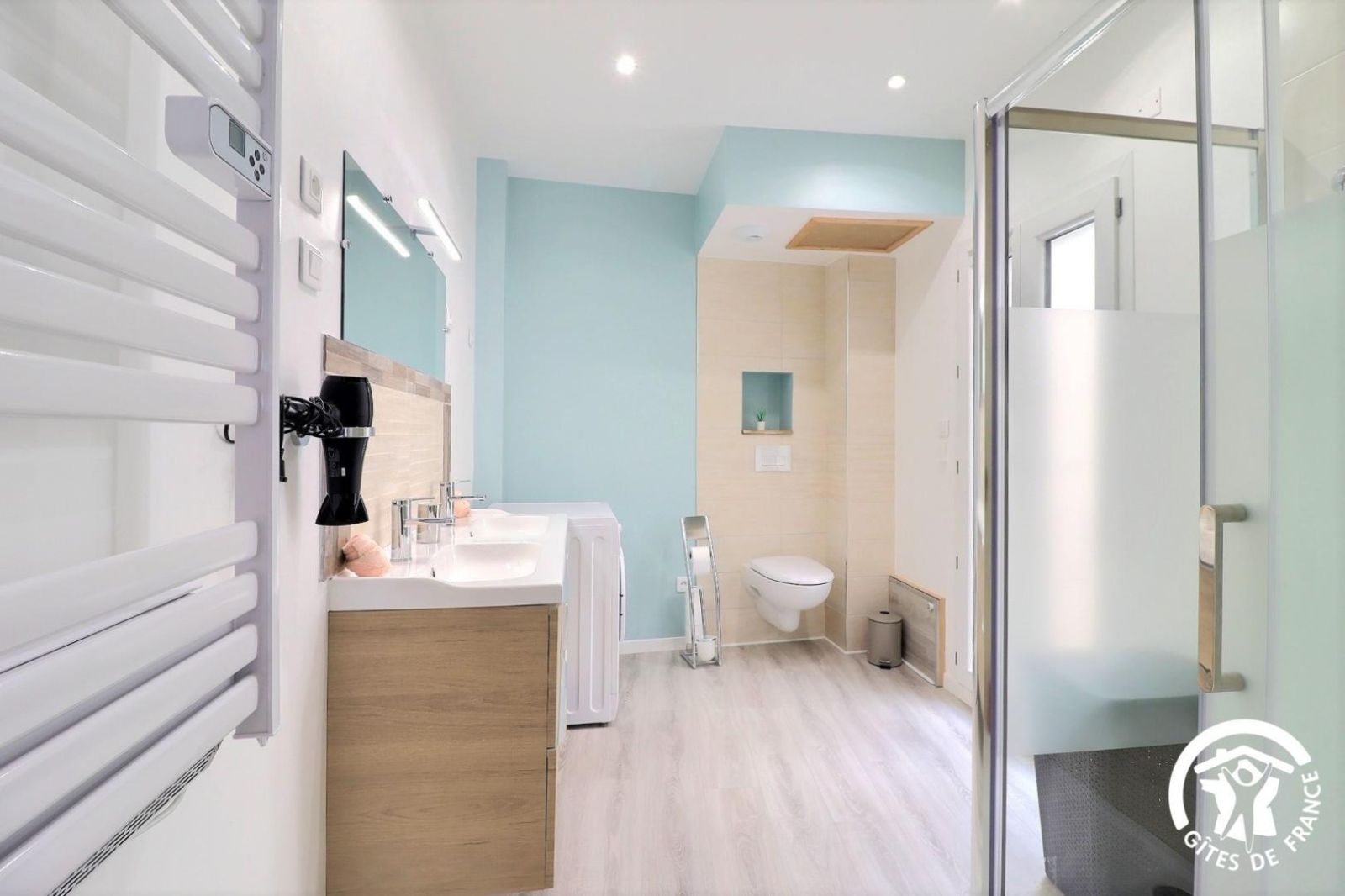 - Salle d'eau privative pour cette chambre avec vasque, WC, douche type italienne 80x80cm et porte-serviettes chauffant.