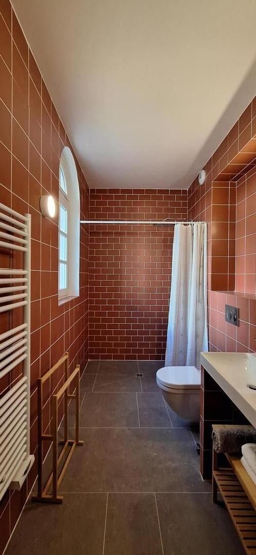 - une salle d'eau avec douche à l'italienne, meuble double vasque, WC et sèche-serviettes chauffant