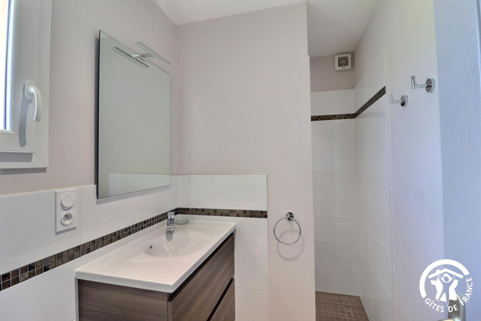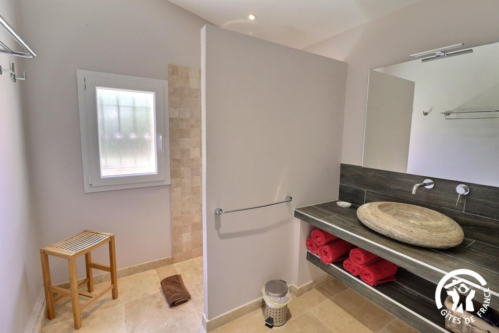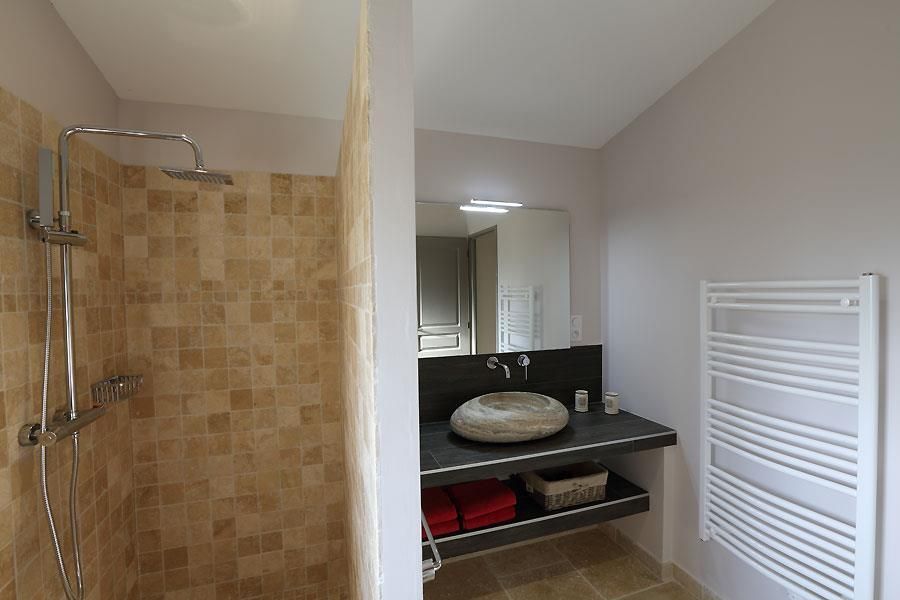 - Une chambre avec 1 lit en 160 x 200 et une deuxième avec 2 lits en 90 x 200. -Salle d'eau avec douche à l'italienne et vasque en marbre.