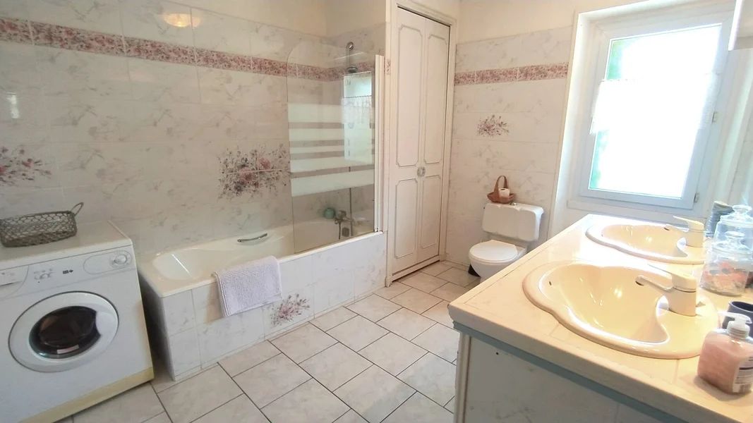 Salle de bain avec baignoire, lave-linge, 2 vasques et WC. Équipement bébé complet à la demande. Vue sur le jardin. Accès à la piscine commune 8x4m (1,4m de profondeur) de 9h30 à 19h30 du 1er avril au 1er octobre. Location de draps et linge de toilette à la demande, ménage de fin de séjour en option. Animaux bienvenus gratuitement. Internet (wifi). Chauffage électrique (forfait 50€ par semaine). Taxe de séjour en sus..