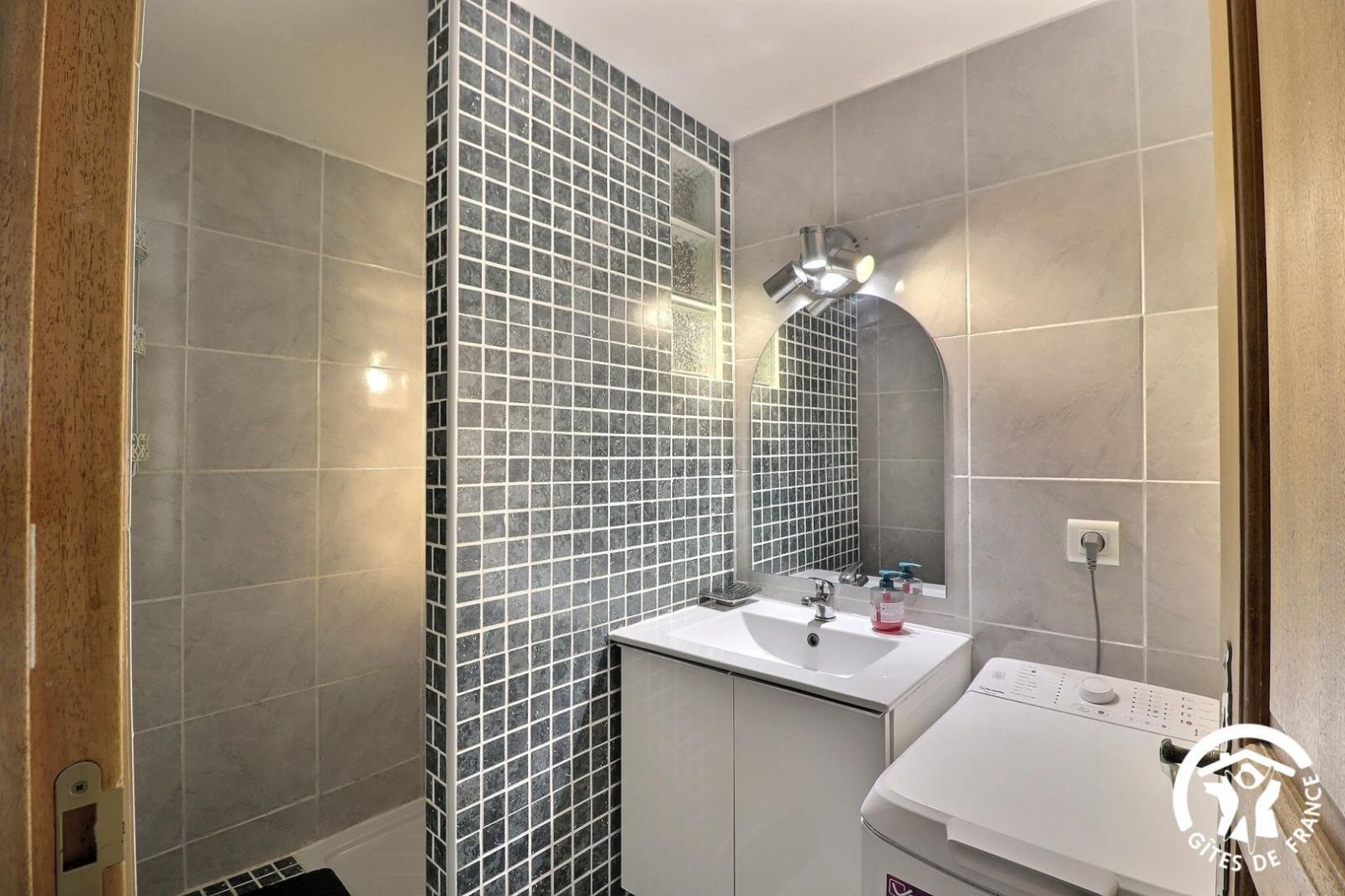 - 2 salles d’eau avec douche, vasque et sèche-serviettes. Lave-linge à disposition dans une des salles d'eau.