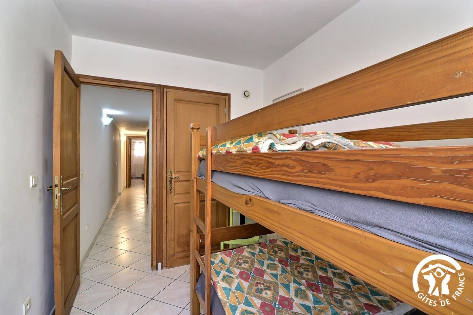- 1 chambre avec lits superposés (90x190 cm) et placard mural.