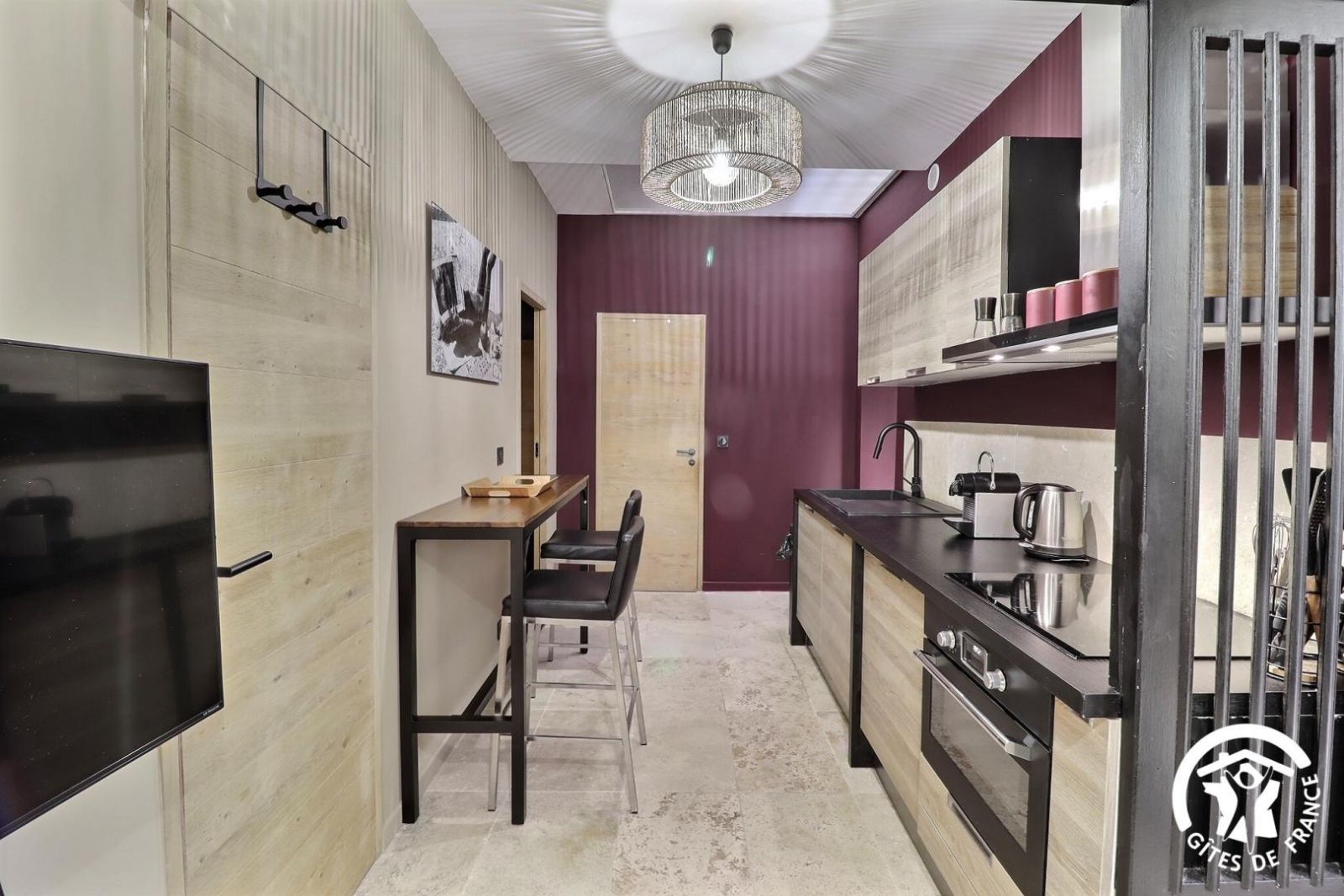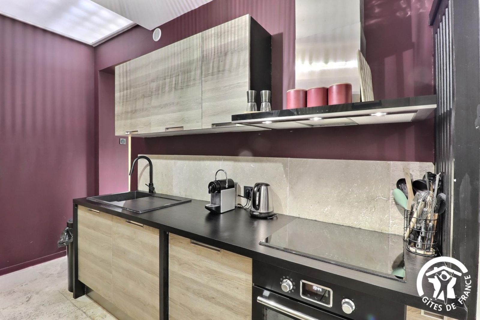 - d'un salon avec canapé lit gigogne 80x200 convertible en 160x200, table et deux chaises hautes, TV murale, table et chaises hautes, cuisine équipée avec petit lave-vaisselle, 3 feux induction, four micro-onde combiné, réfrigérateur et machine à laver/sèche-linge