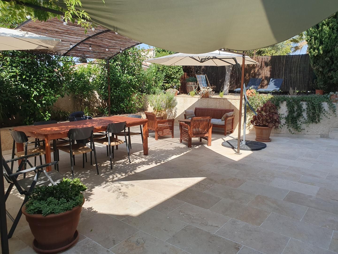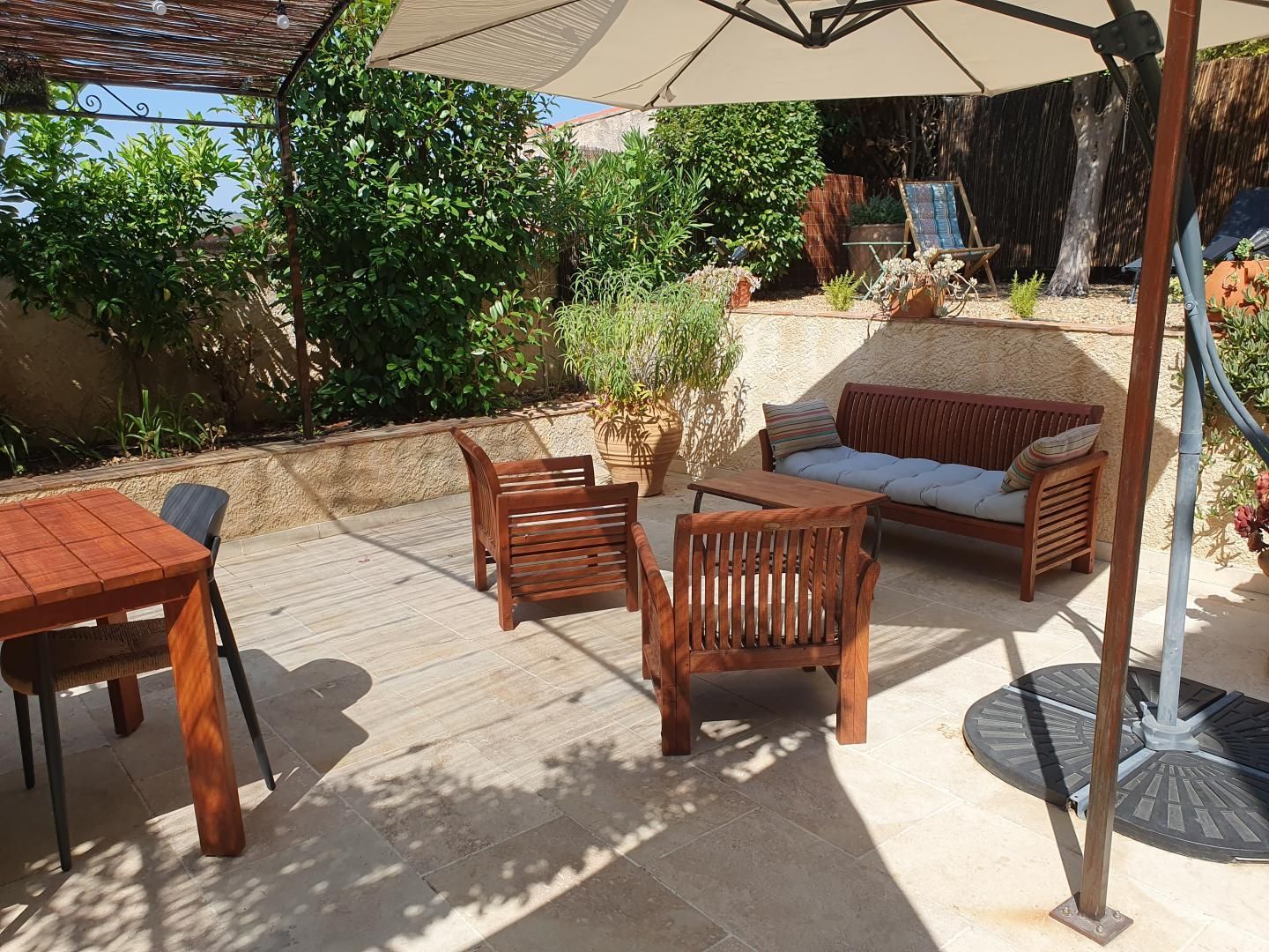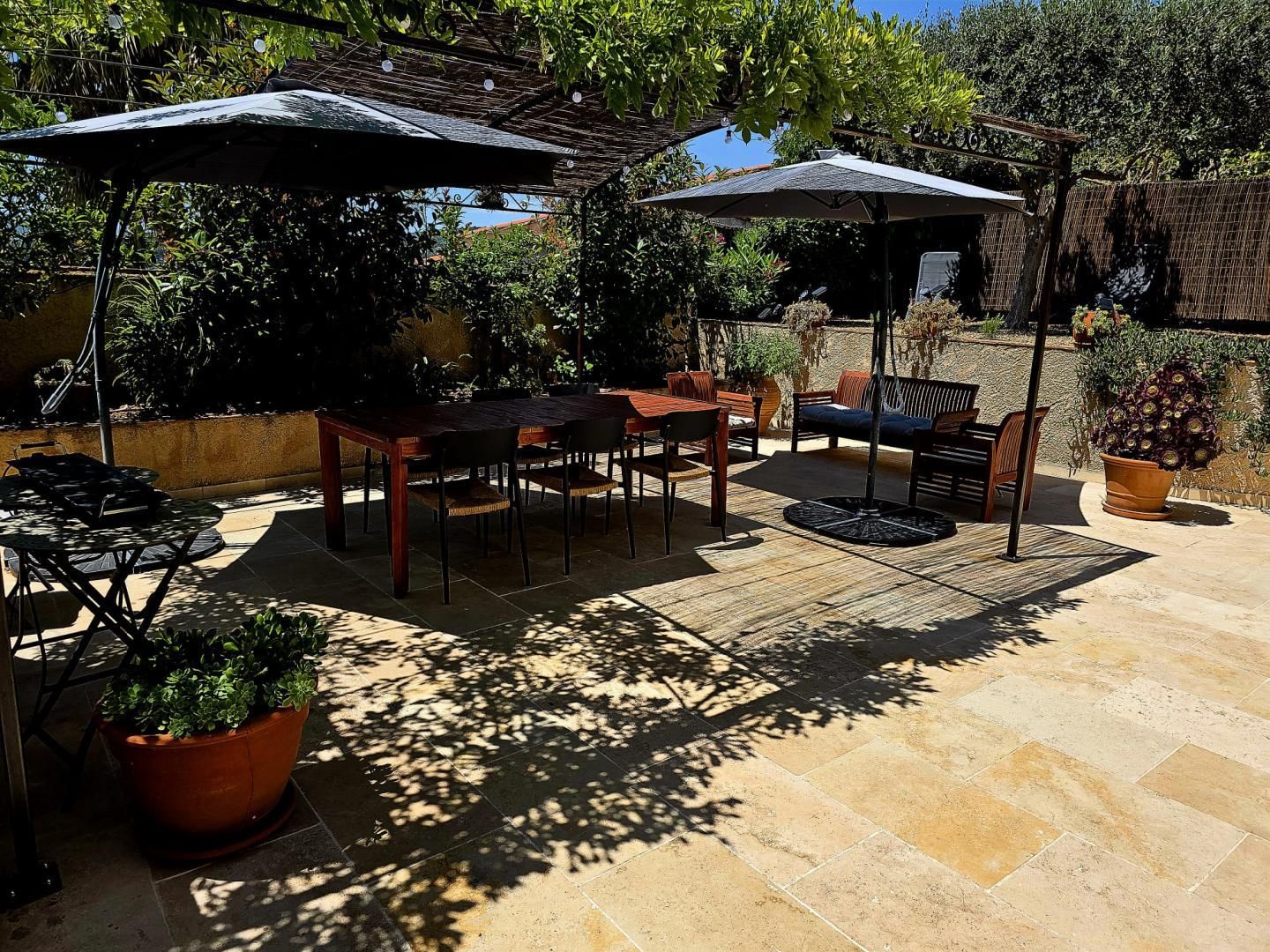 La véritable perle de ce gîte est sa terrasse arborée, un véritable havre de paix où vous pourrez prendre vos repas en plein air, lire à l'ombre des arbres, ou tout simplement vous détendre.