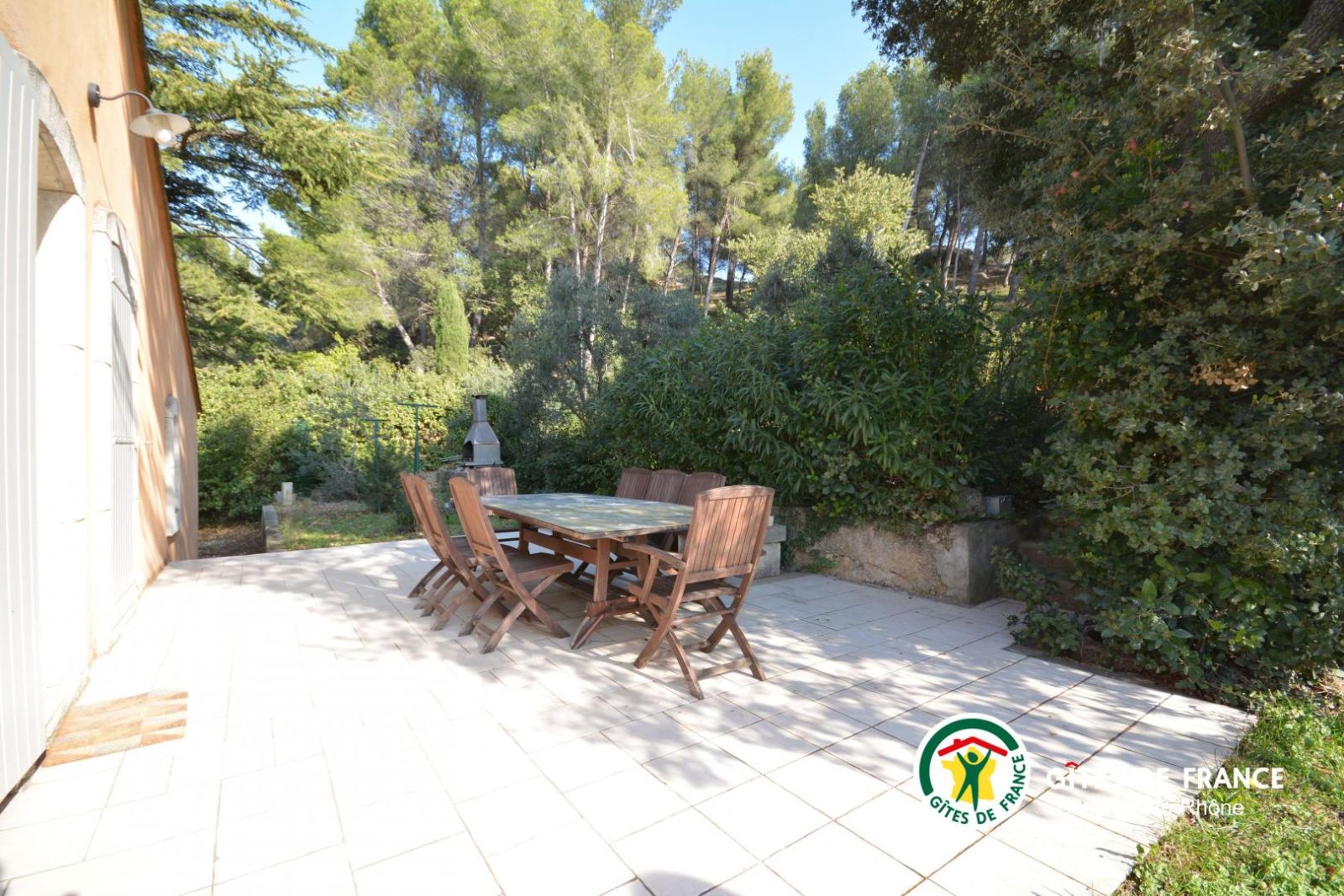2 Vastes terrasses (50 m² au sud et 40 m² à l'est) avec salon de jardin (sud et est). Jardin clos de 2000 m². Barbecue.