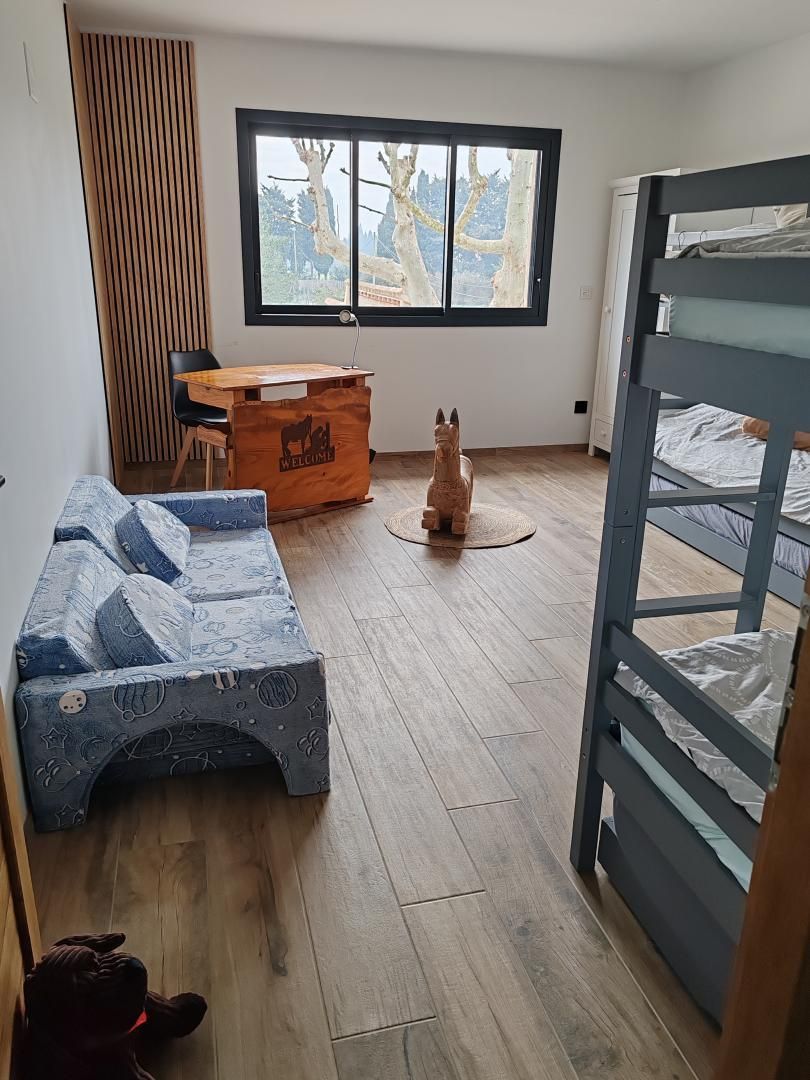 - d'une chambre enfants avec lits superposés et à tiroirs (6 lits 90x200cm). - d'une salle de bain avec accès indépendant (baignoire). - d'un WC indépendant. Toutes charges incluses. Climatisation réversible gainable dans toute la maison. Draps, linge de toilette et serviettes de piscine inclus. Ménage de fin de séjour inclus. Matériel bébé à disposition sur demande : lit bébé à barreaux évolutif, lit parapluie et chaise haute. Parking privé sur la propriété.