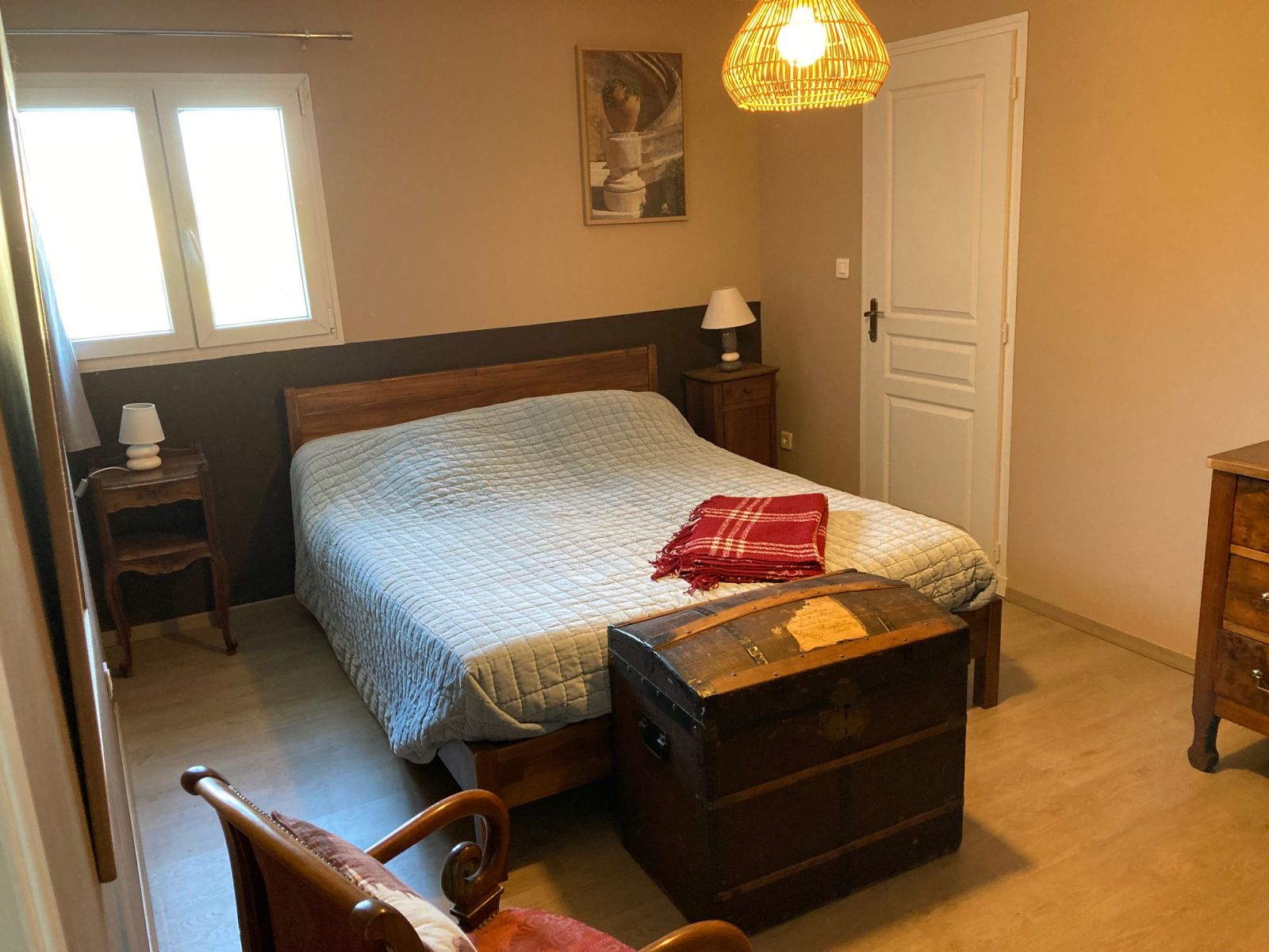 Hébergement indépendant, mitoyen au propriétaire, comportant 2 chambres spacieuses, une grand pièce à vivre et une grand terrasse.
