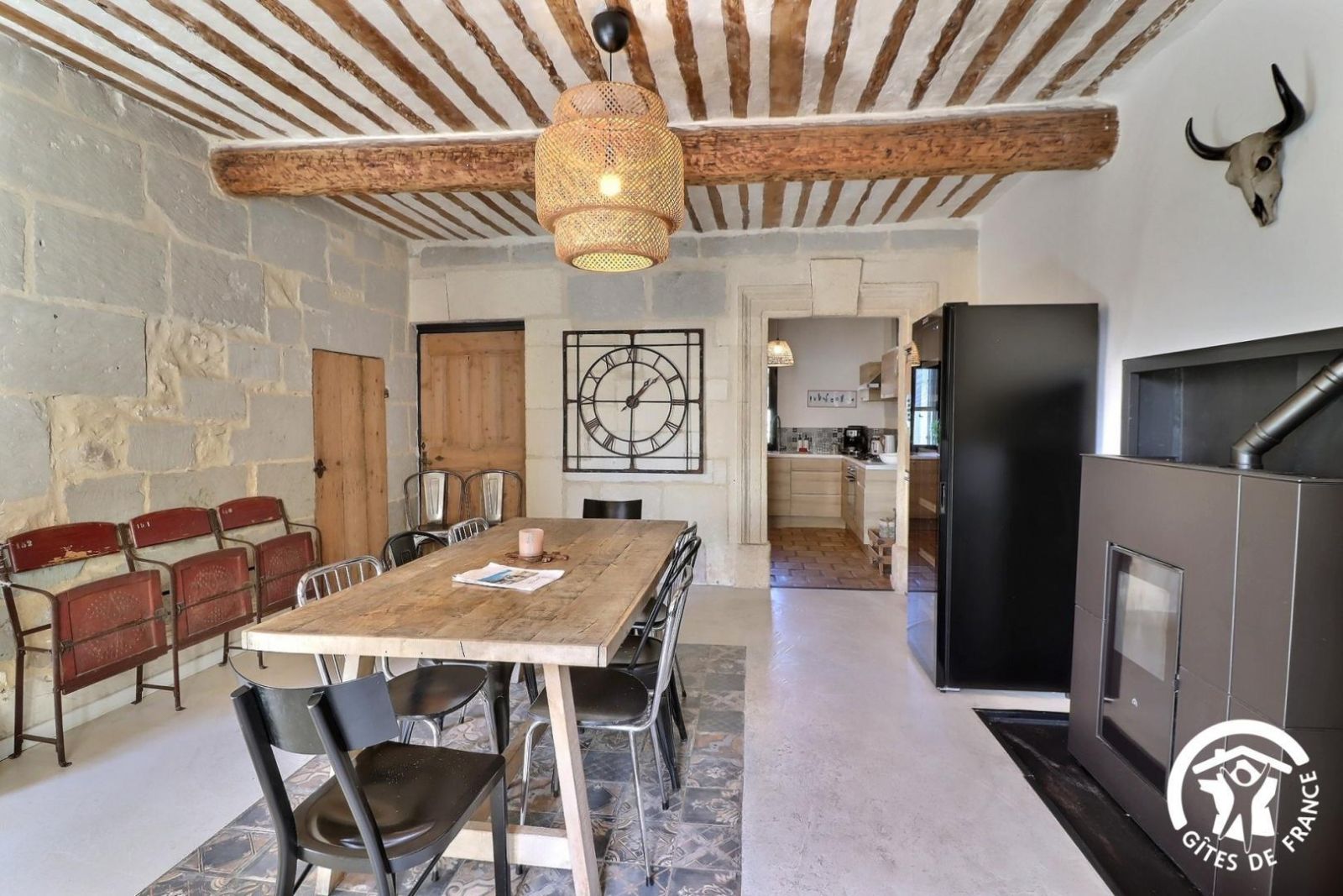 - un second séjour avec cuisine équipée, espace repas, poêle à granulés et escalier donnant sur les trois chambres