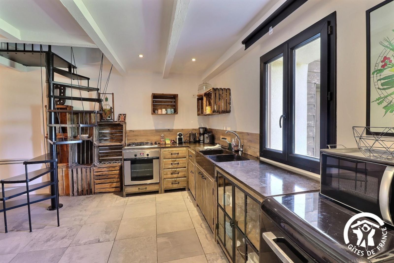 - un premier séjour avec cuisine équipée et son espace repas et d'une escalier en colimaçon donnant sur trois chambres