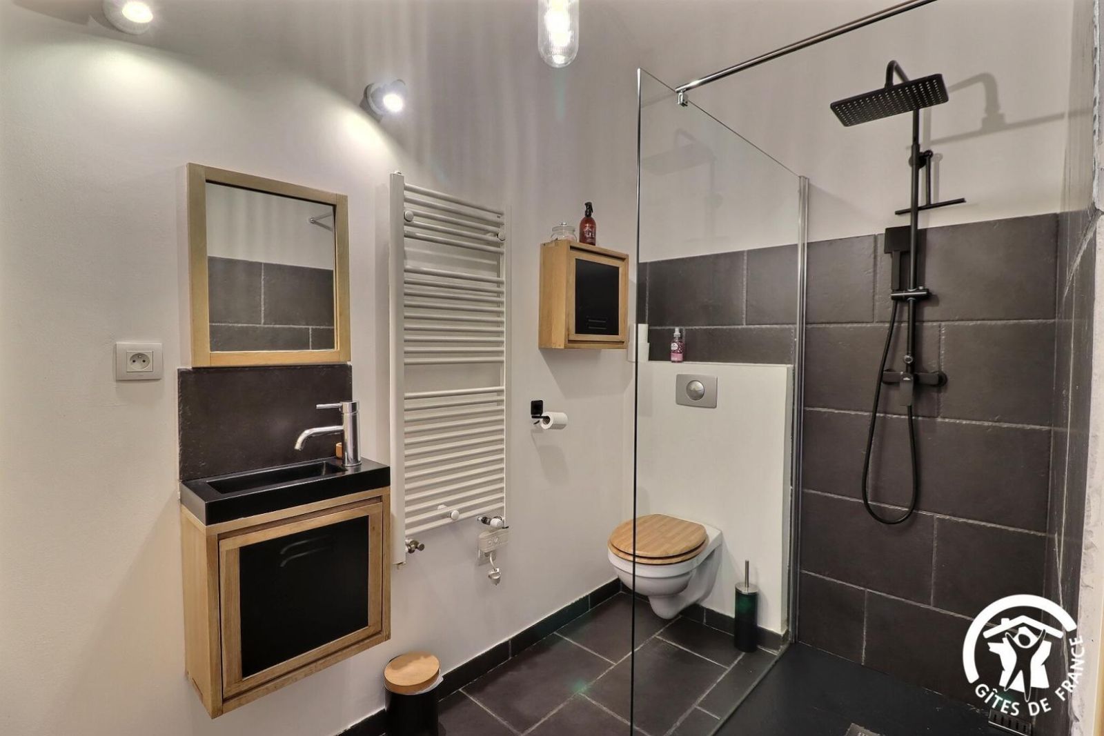 - une salle d'eau avec douche à l'italienne, vasque et WC, accessible par le couloir ou la chambre