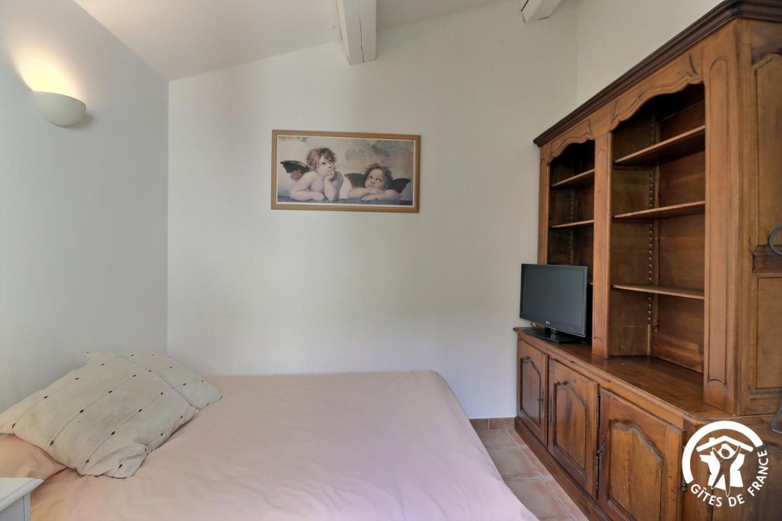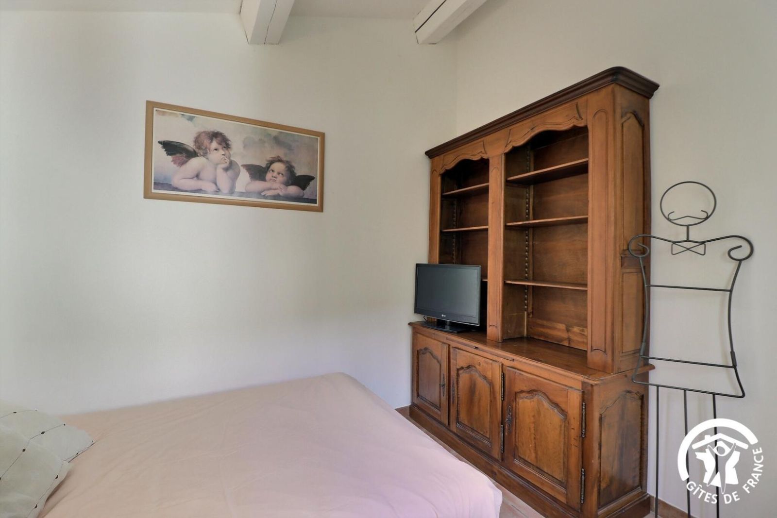 - Lit 140x190cm, table et lampes de chevet, commode, TV.
