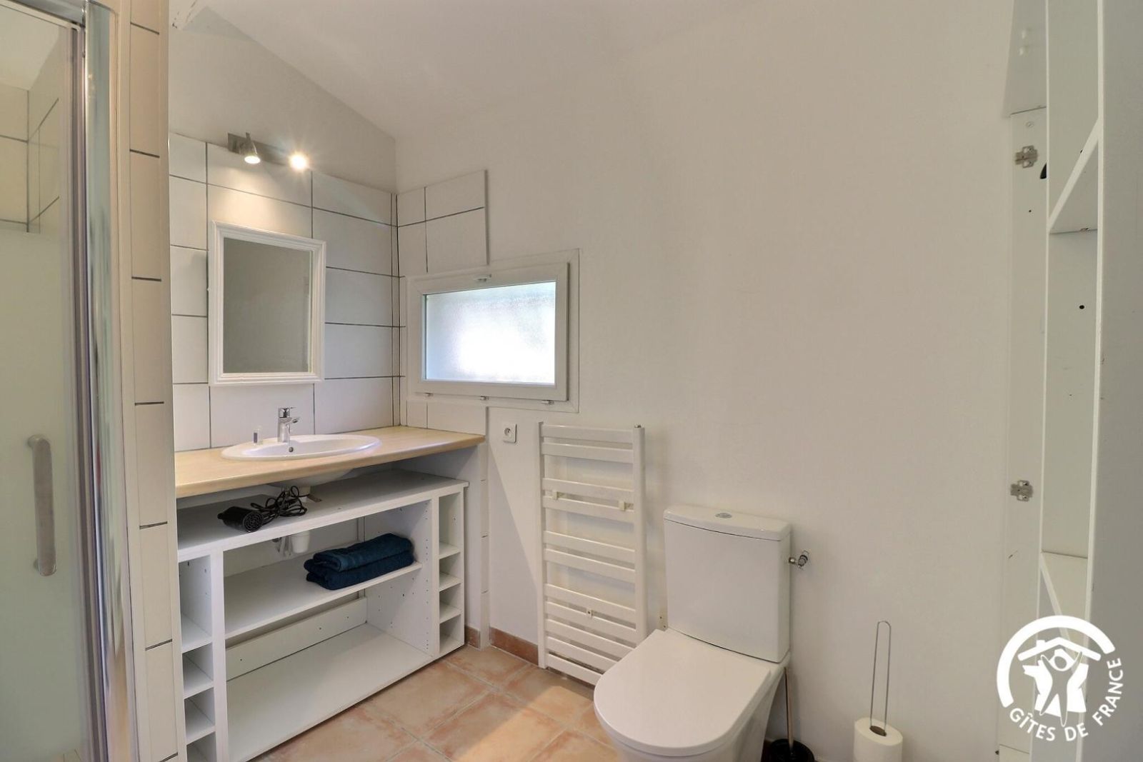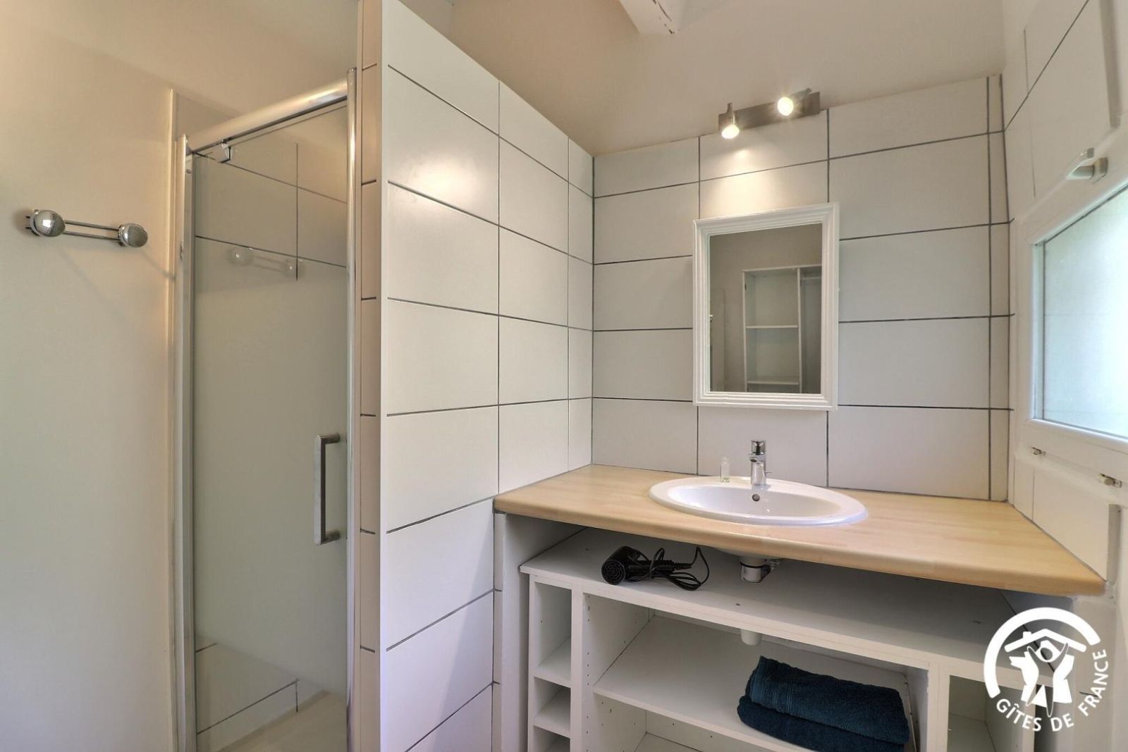 - Salle d'eau avec douche, vasque et meuble, sèche-serviettes, lave-linge, penderie et WC.