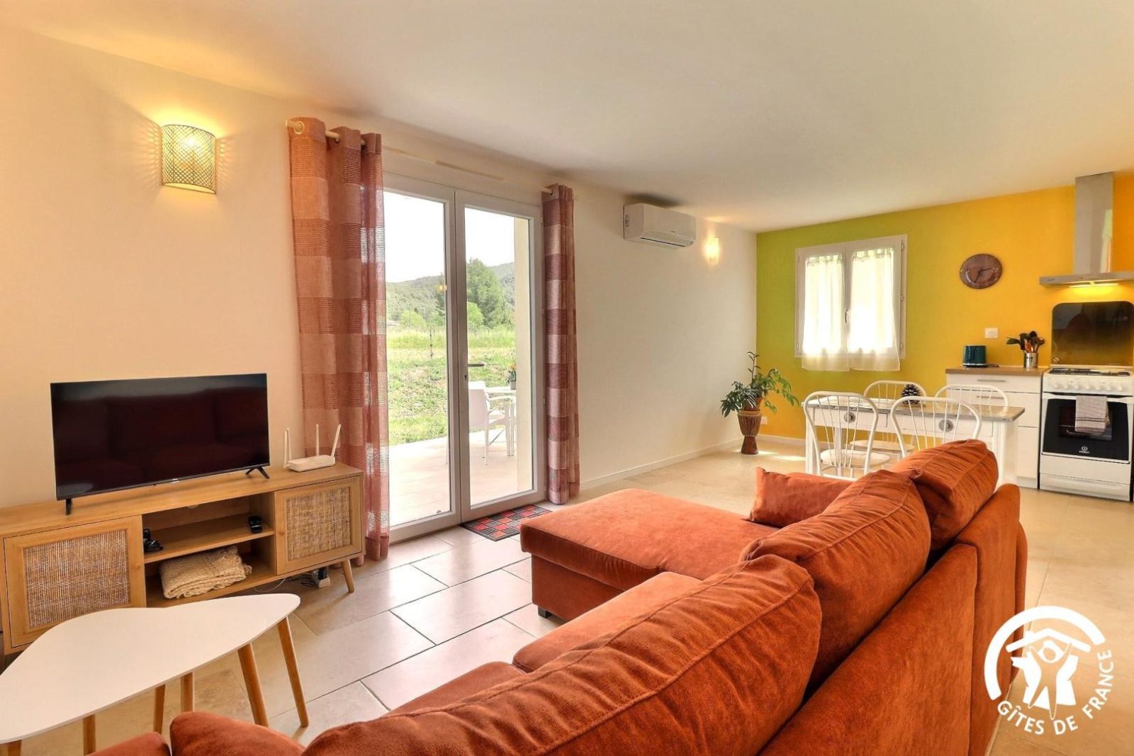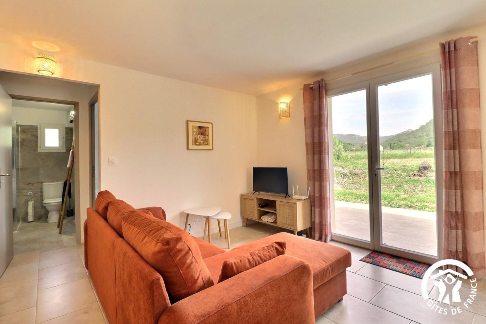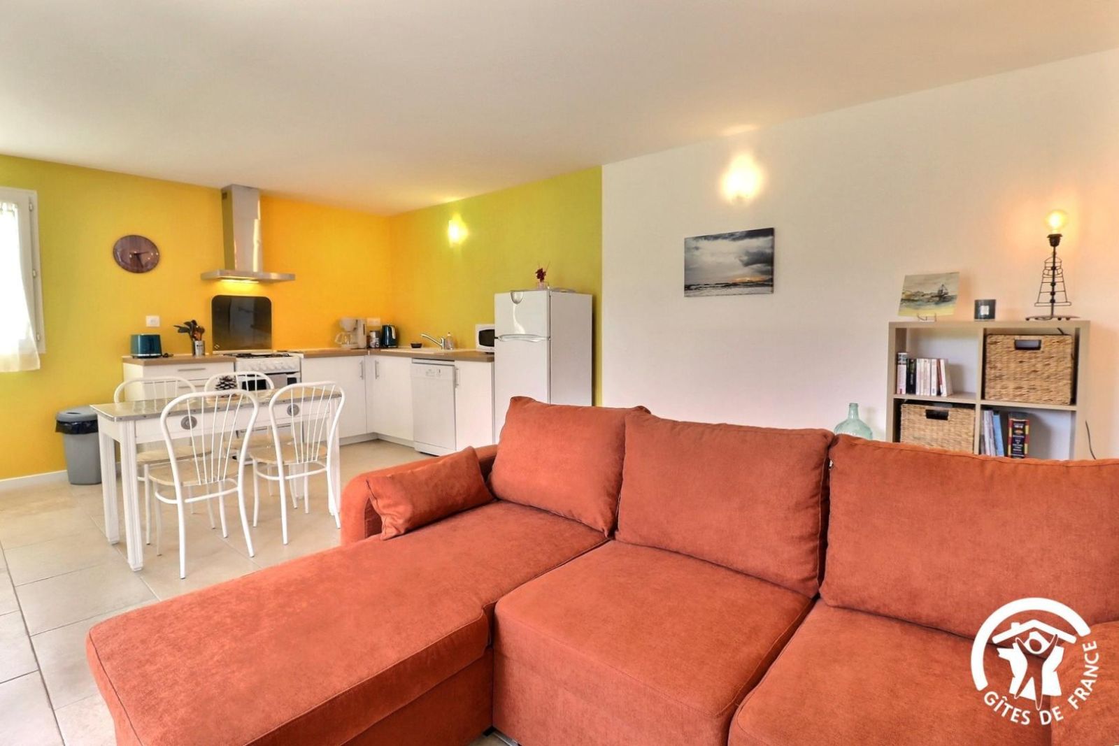 - Un séjour composé d'une cuisine équipée avec gazinière 3 feux gaz et 1 électrique, four électrique, hotte, lave-vaisselle, micro-ondes et réfrigérateur/congélateur. Espace repas pour 4 personnes. Coin salon avec canapé d'angle convertible (160x200cm - possibilité de 2 couchages d'appoint supplémentaires), TV écran plat connectée et bibliothèque. Climatisation réversible.