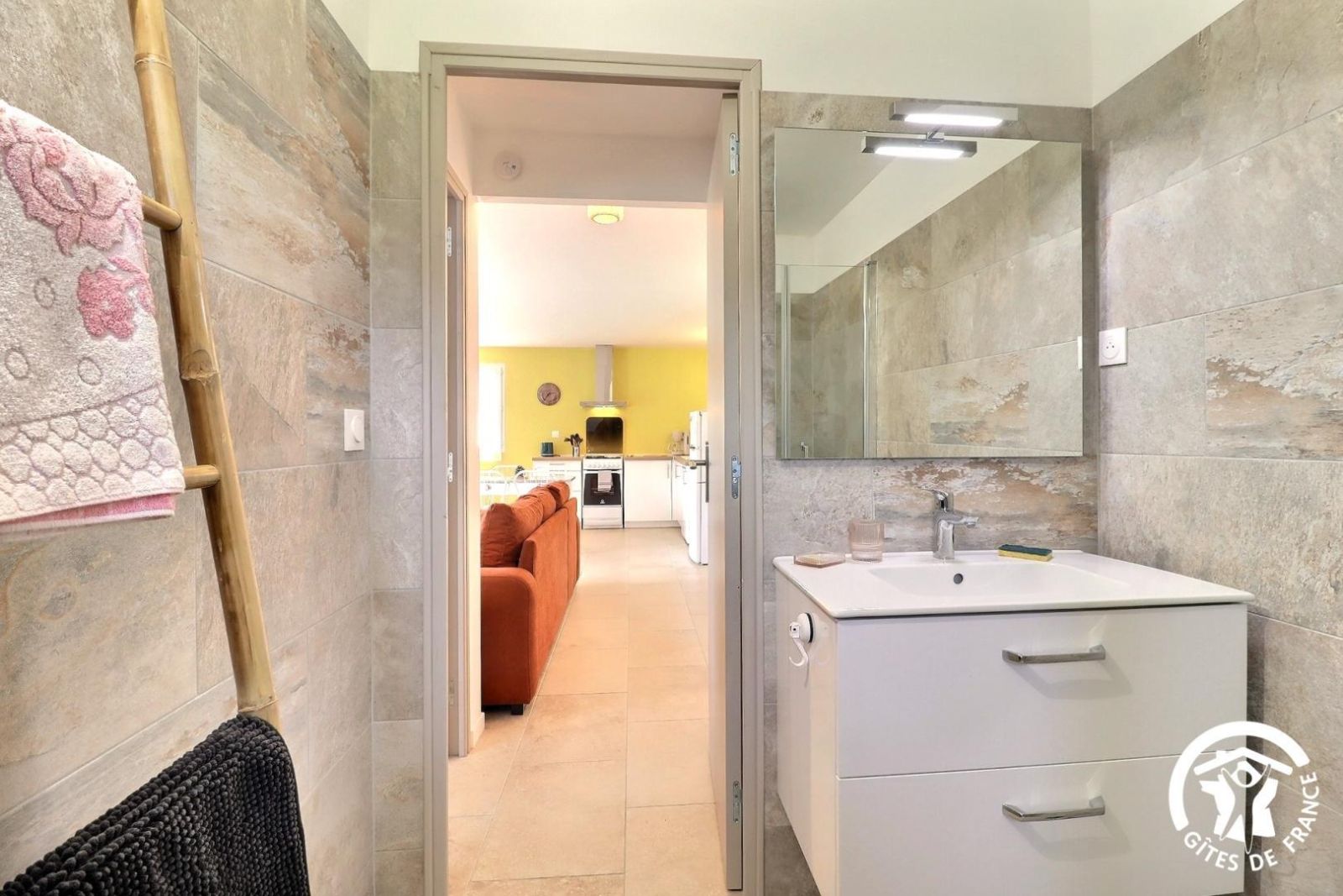 - Une salle d'eau avec douche type italienne 100x90cm, vasque, WC, échelle porte-serviettes et chauffage électrique d'appoint.