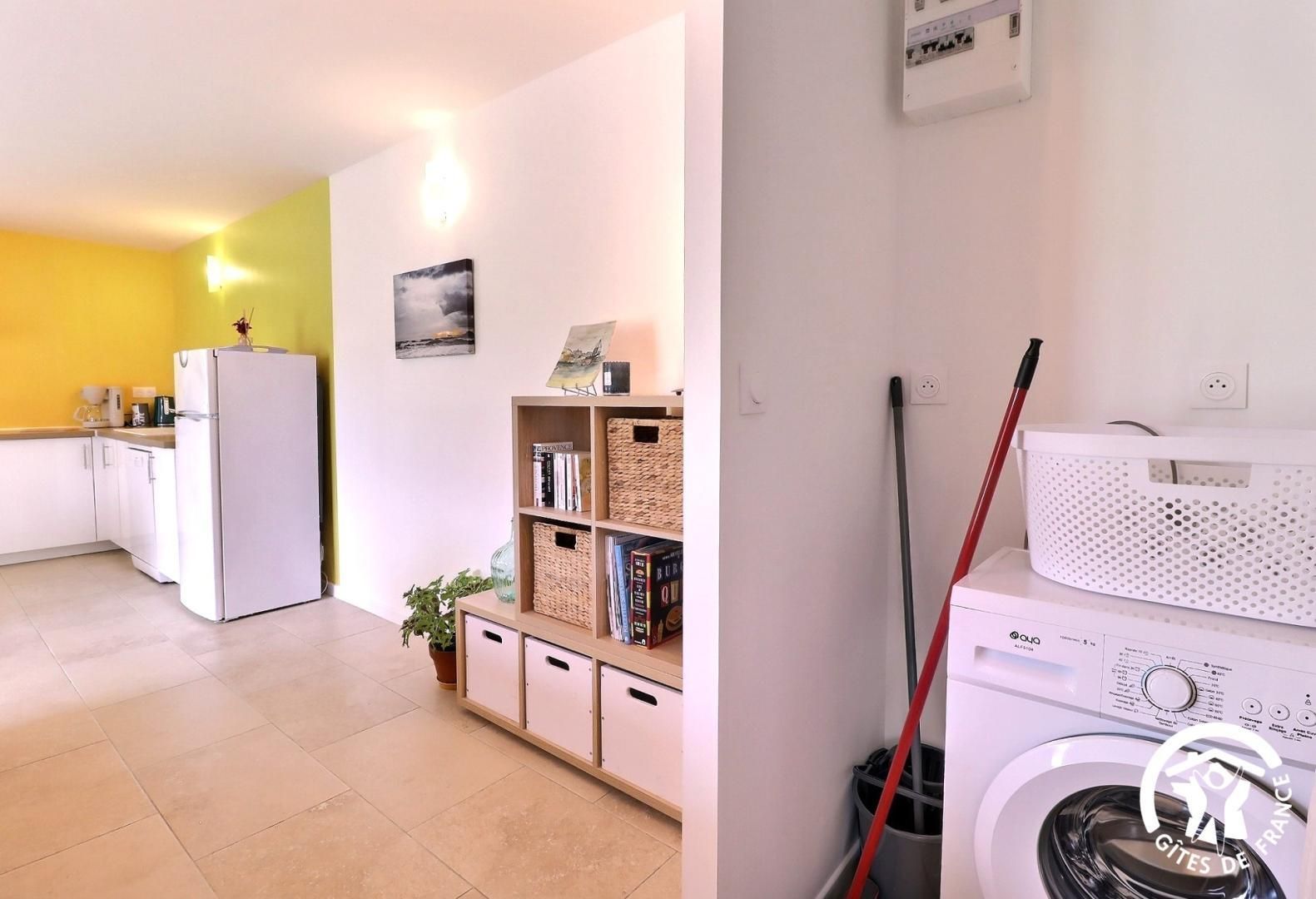 - Petit dégagement avec le lave-linge et les ustensiles de ménage.