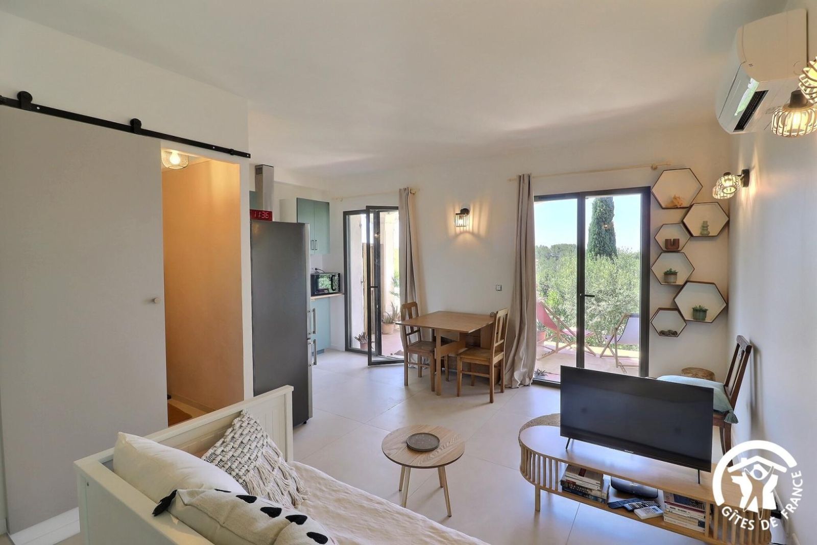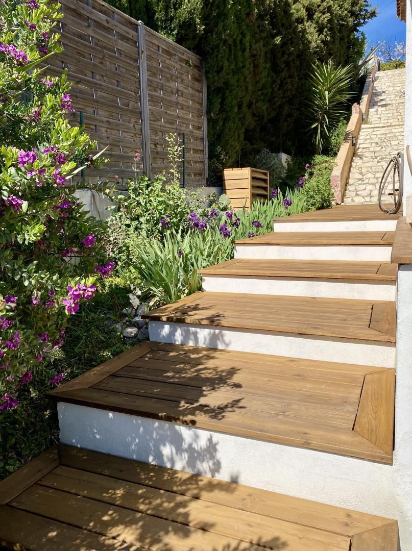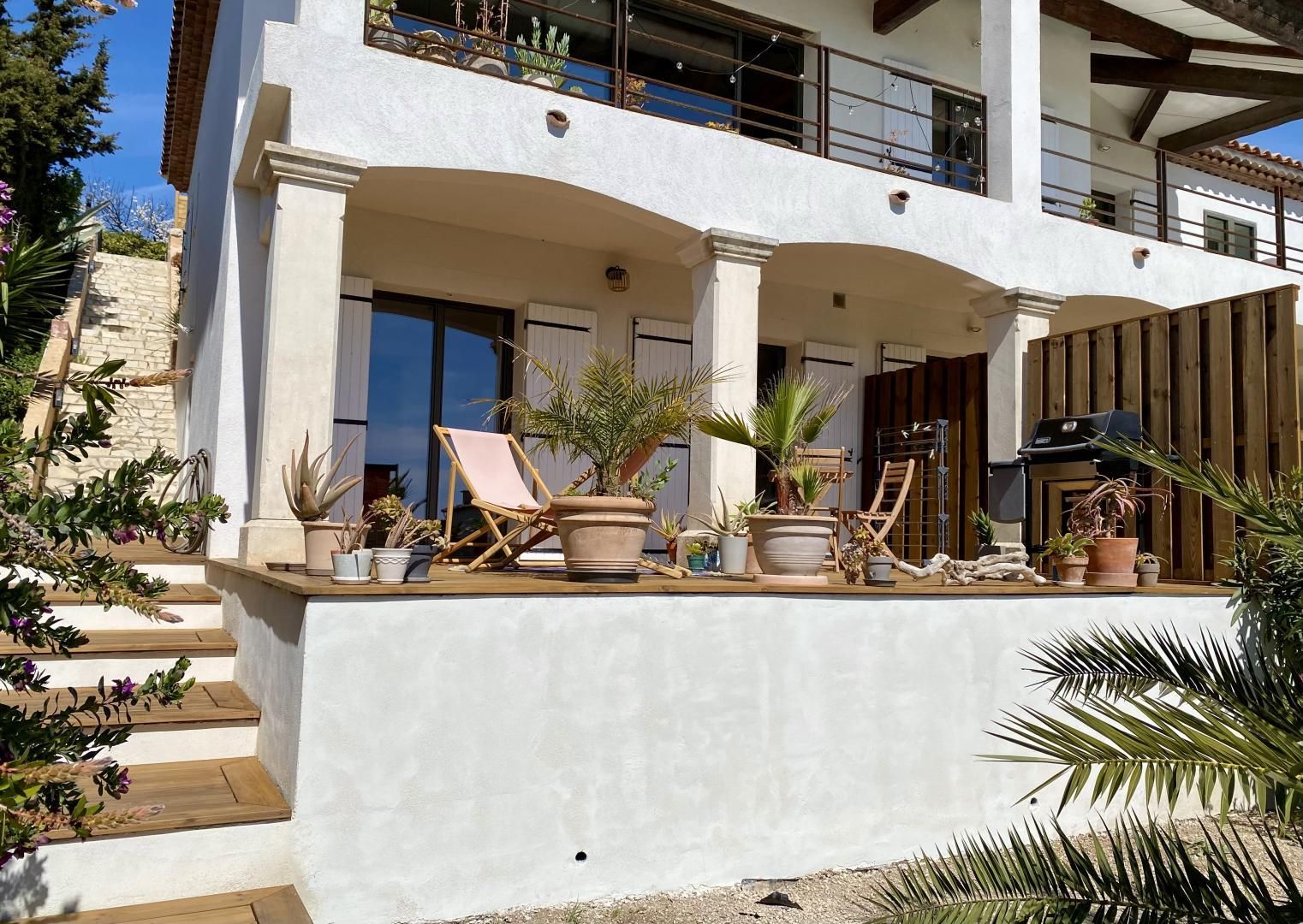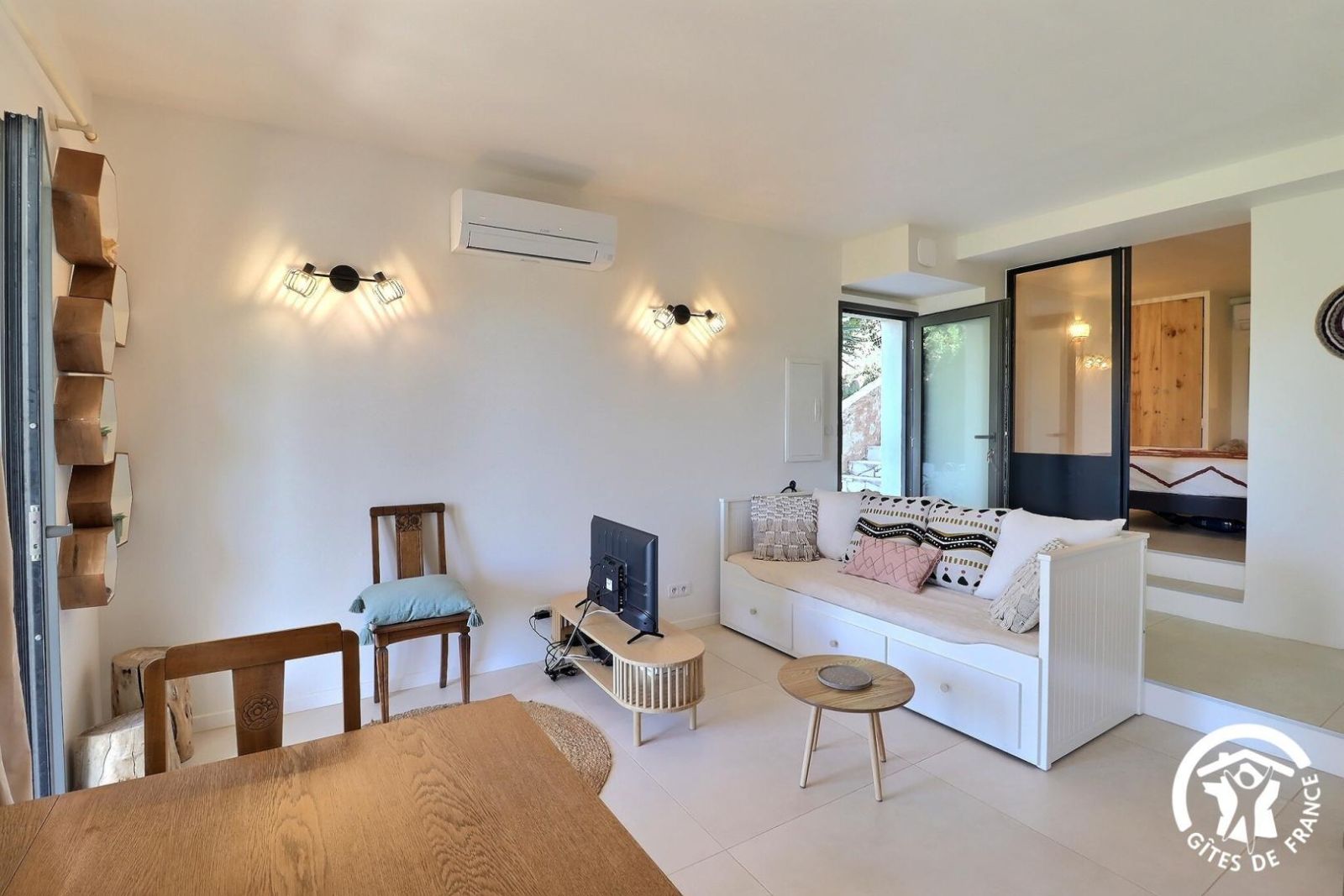 Perché sur une colline surplombant la mer sur la Côte Bleue, le gîte est un charmant loft situé au rez-de-chaussée de la maison des propriétaires. Il vous faudra descendre une trentaine de marches pour arriver dans votre cocon. La terrasse, mitoyenne de celle des propriétaires, est équipée d'une table avec chaises et de transats donne accès à la piscine au sel partagée avec les propriétaires et offre une belle vue sur le jardin fleuri d'essences méditerranéennes. La mer est à seulement 2km, vous pourrez rejoindre la calanque de Méjean en randonnée depuis le gîte. Des plages de sable sont à 6km. Du 15 au 28 juillet : les locataires auront l'exclusivité de la piscine et de ses abords. Le gîte est composé :