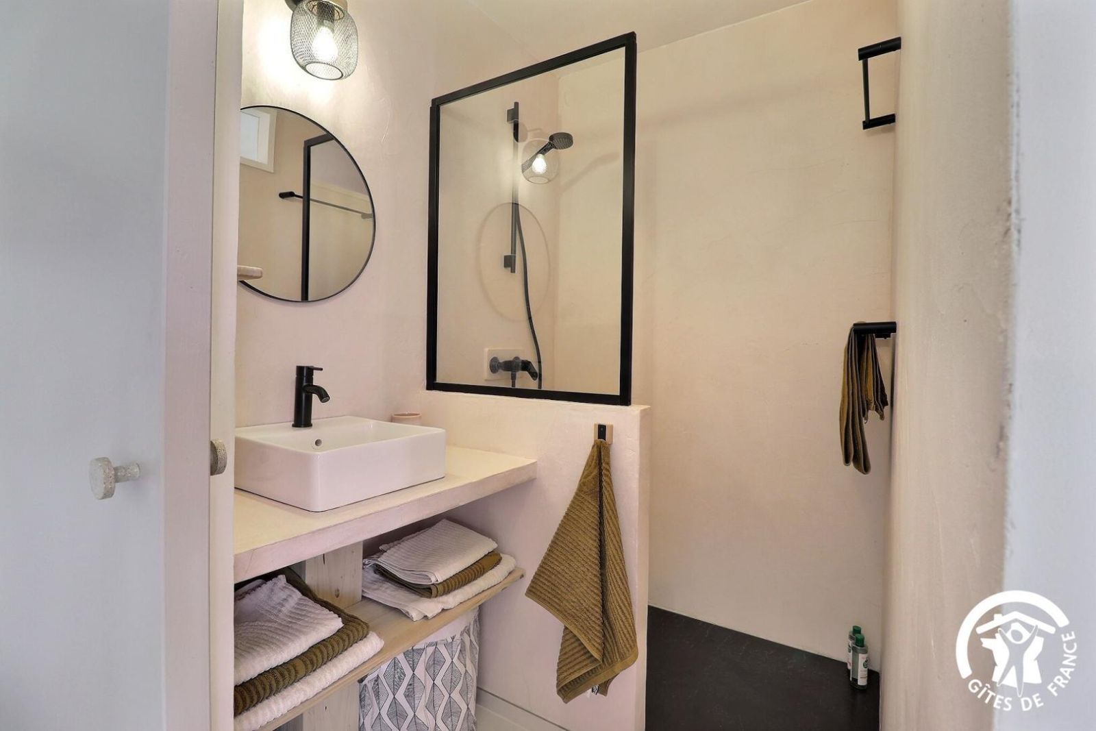 - d'une salle d'eau en béton ciré avec douche italienne en 140, vasque et étagères. Piscine au sel partagée avec les propriétaires : 10x5m, profondeur max 3m, accessible de 9h30 à 19h, sécurisée par alarme. Climatisation réversible. Wifi (fibre haut débit). Draps, linge de toilette, serviettes de piscine et ménage de fin de séjour inclus. Matériel bébé à la demande. Des condiments, épices, sucre, café, thé, issus de l'agriculture biologique, shampoing et gel douche bio également sont fournis, Un Barbecue Weber est à votre disposition ainsi qu'un fer à repasser, un sèche cheveux.