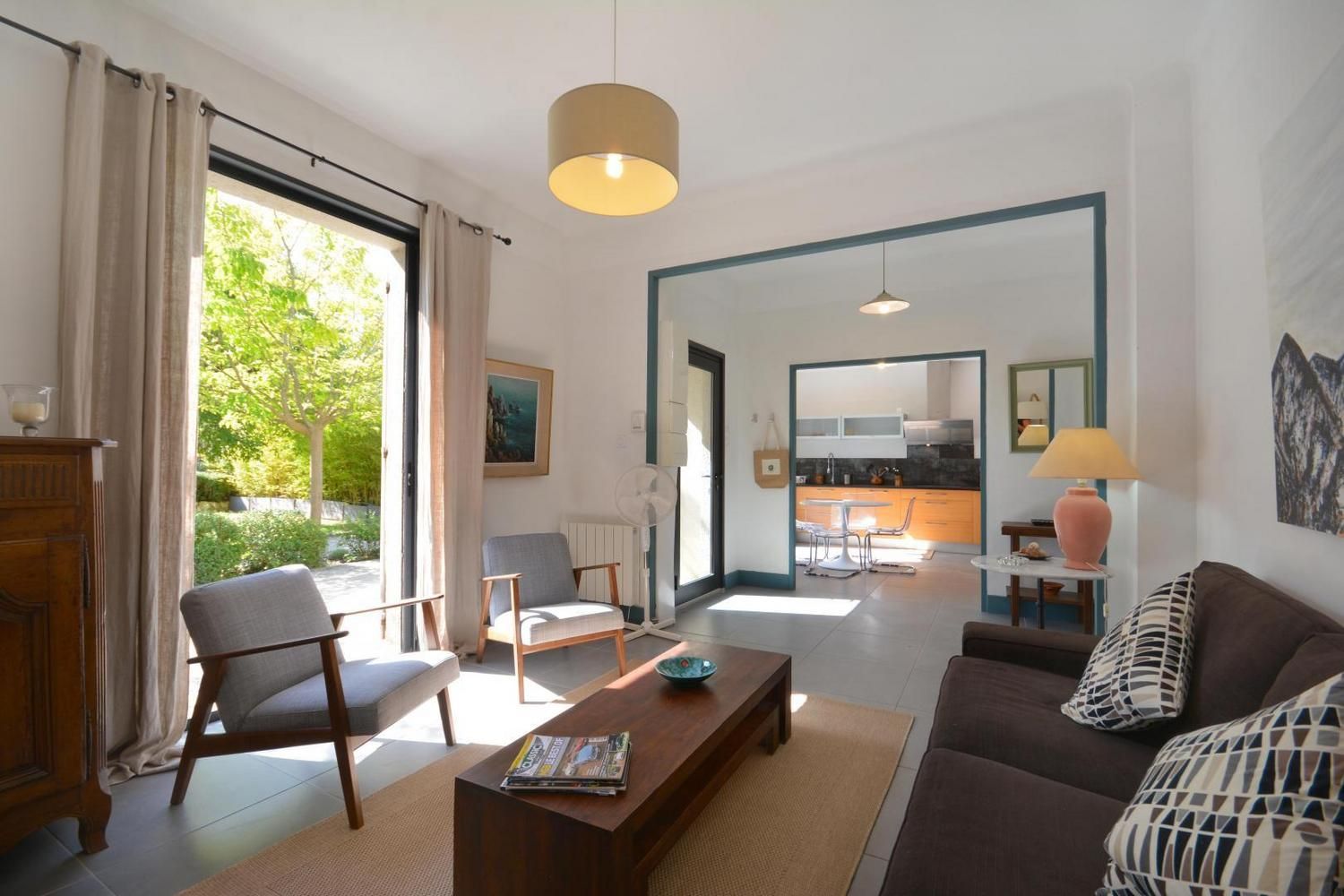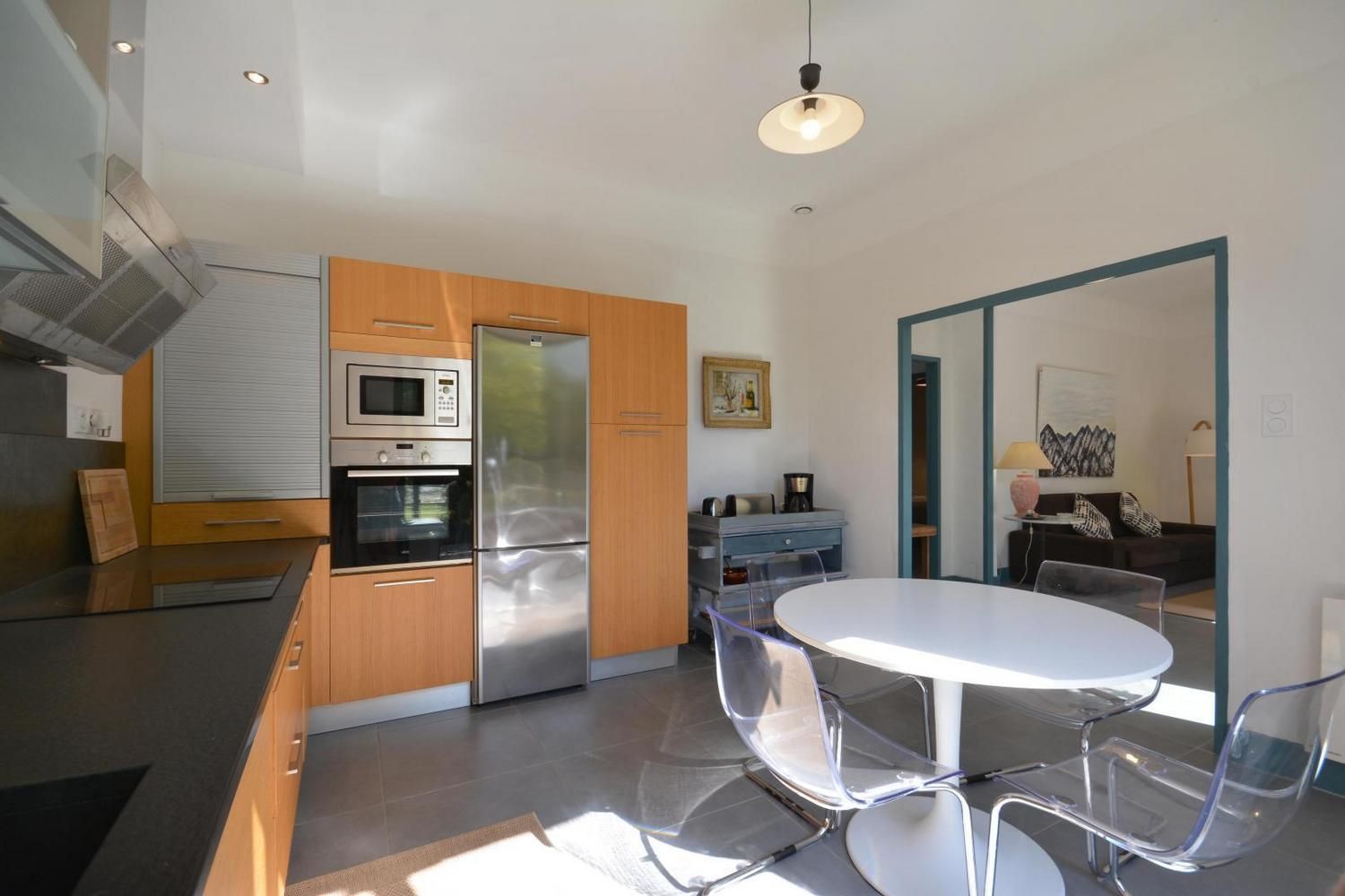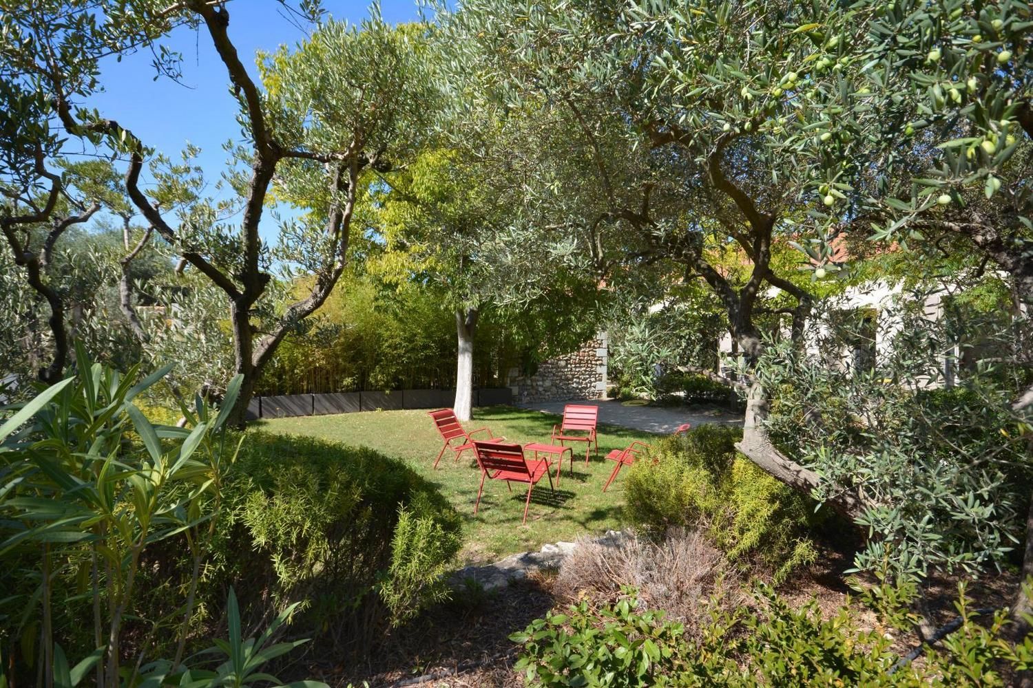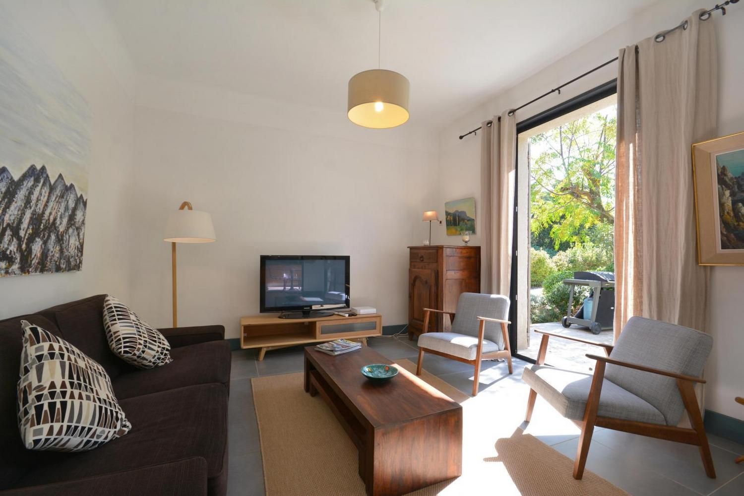 Dans le charmant village d'Eygalières, sur une petite route tranquille qui conduit au pied des sentiers de randonnée dans les Alpilles, très jolie maison semi-indépendante sur terrain commun clos (portail avec télécommande). Piscine privative (4 x 8 m, profondeur de 1.10 m à 1.60 m - volet roulant de sécurité), accessible du 1er mai au 15 octobre. Ce gîte dispose d'un vaste espace extérieur aménagé avec terrasse et salon de jardin, jardin ombragé avec salon détente, piscine privative avec transats. Vous serez au milieu d'oliviers, lauriers roses, arbustes et arbres qui vous prodigueront aux heures les plus chaudes une ombre bienvenue ! Entièrement en rez de chaussée : vaste salon détente avec canapé, télévision écran plat (120cm) donnant sur la terrasse et le jardin. La cuisine, grand espace ouvert vous propose tous les éléments intégrés (lave vaisselle, four, micro ondes, frigo/congélateur, petit électroménager) et le coin repas, avec accès direct également sur la terrasse. Deux chambres, une avec 2 lits 1 personne (90x190) et une avec 1 lit 2 personnes (160x200). Très belle literie, grands placards de rangement. La chambre parentale dispose de sa salle d'eau privative avec accès direct (quelques marches en contrebas) : douche italienne, beau plan vasque, wc. Seconde salle d'eau indépendante avec douche. Wc indépendant. Buanderie avec lave linge, sèche linge, étendage, rangements et petit électroménager. Chauffage électrique (inclus) - Wifi (fibre) - Ménage sur demande - draps et linge fournis - lit et chaise bébé sur demande - barbecue.