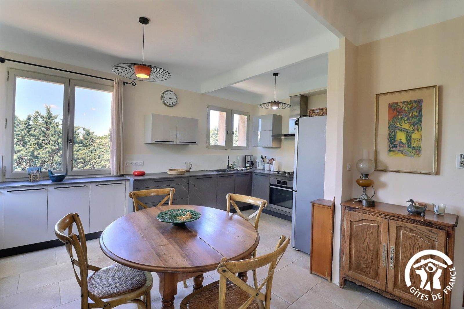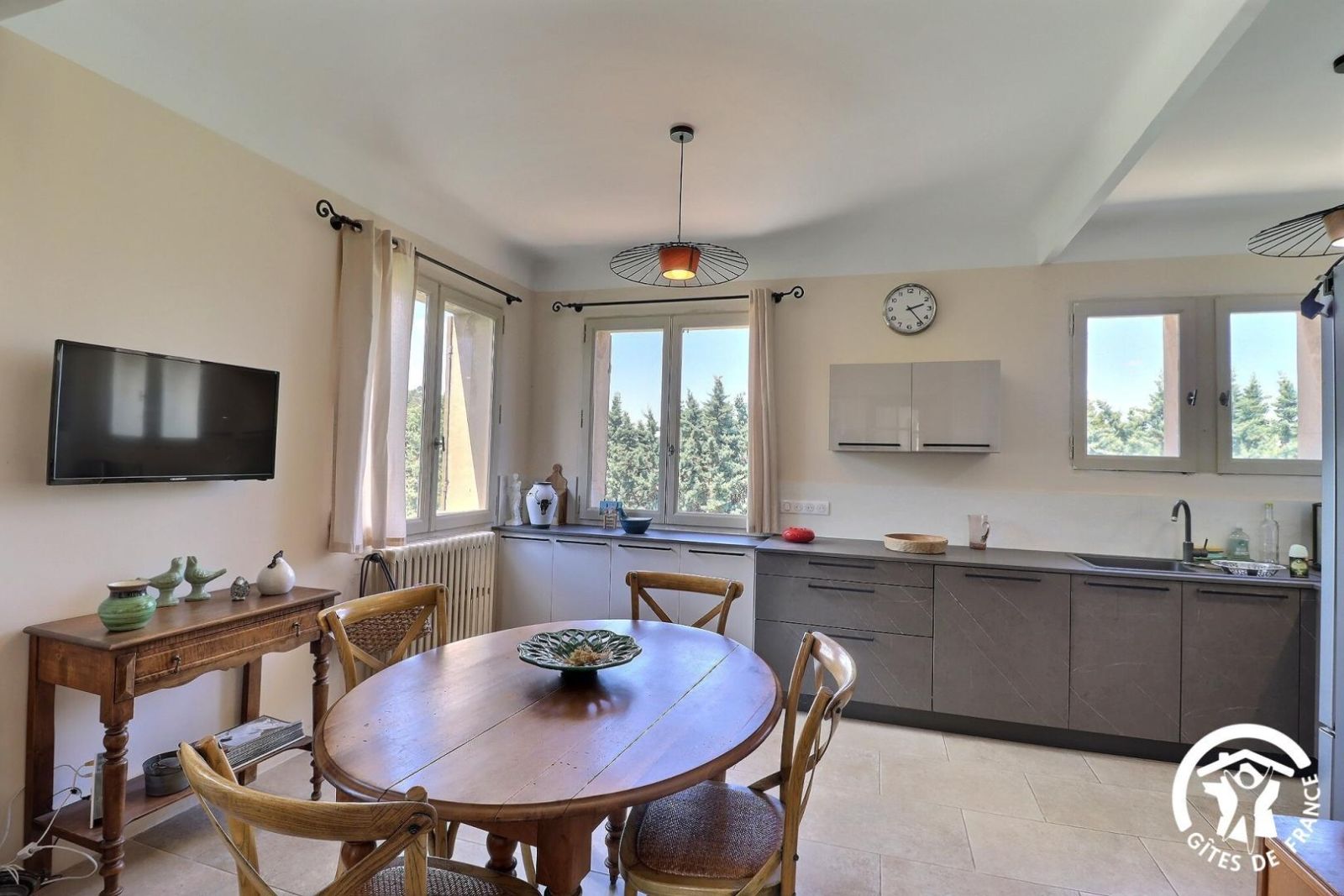 Dans le charmant village perché d'Eygalières, partez à la découverte du parc naturel régional des Alpilles. Au premier étage d'une maison individuelle sur le terrain de la propriétaire et orienté plein sud, ce gîte lumineux dispose d'une terrasse d'environ 20m², de 2 balcons attenant aux chambres et d'espaces verts dans le jardin.