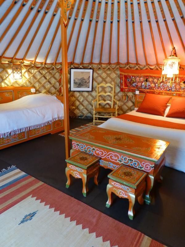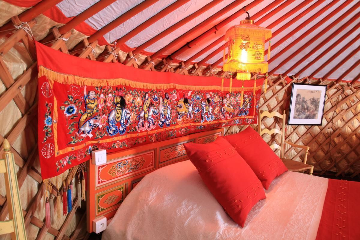 Dans un bel espace verdoyant et ombragé, à proximité du village (10 mn à pied) véritable yourte mongole de 32 m² équipée pour 4 personnes (1x2 pers + 2x1 pers), table basse et 4 tabourets.