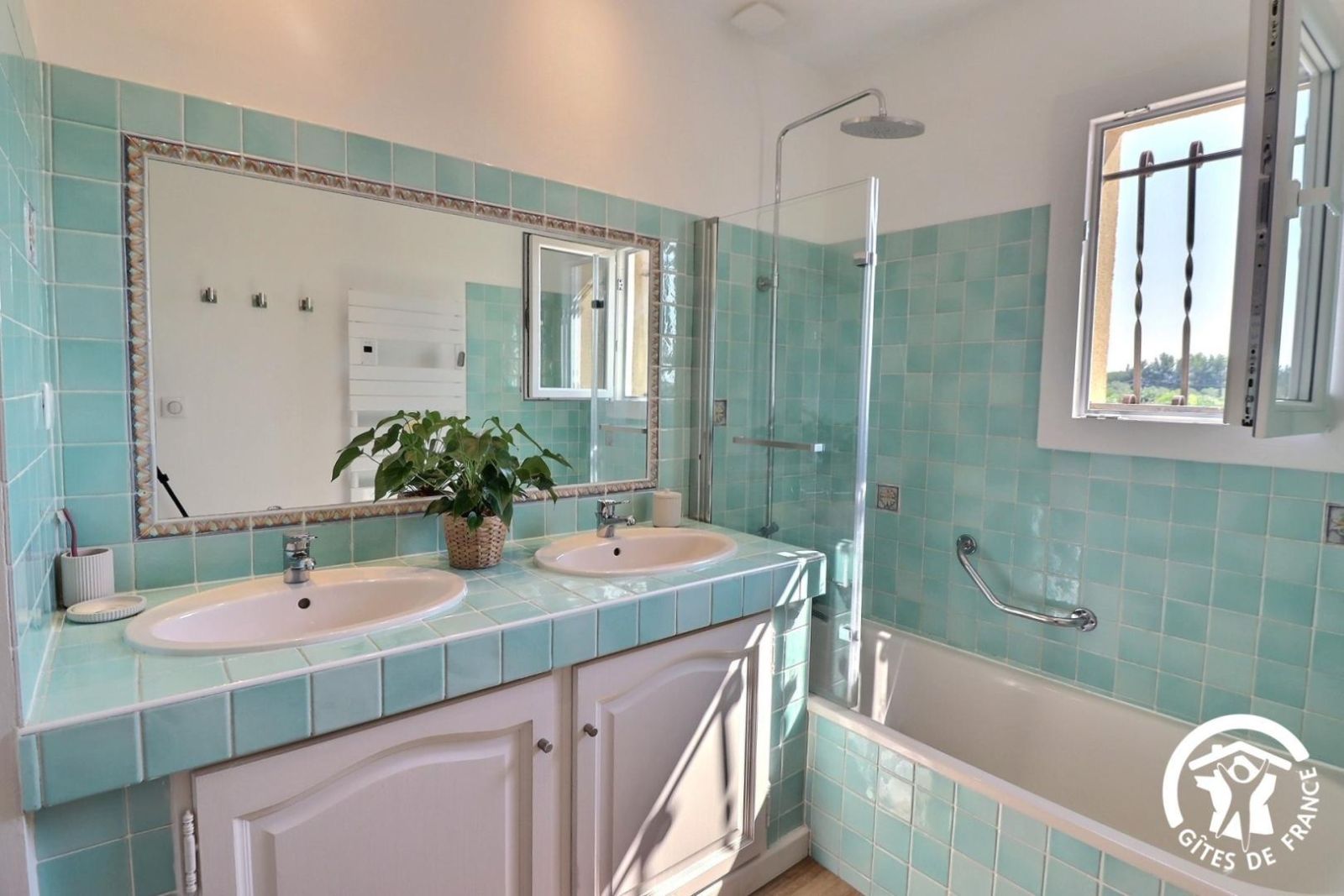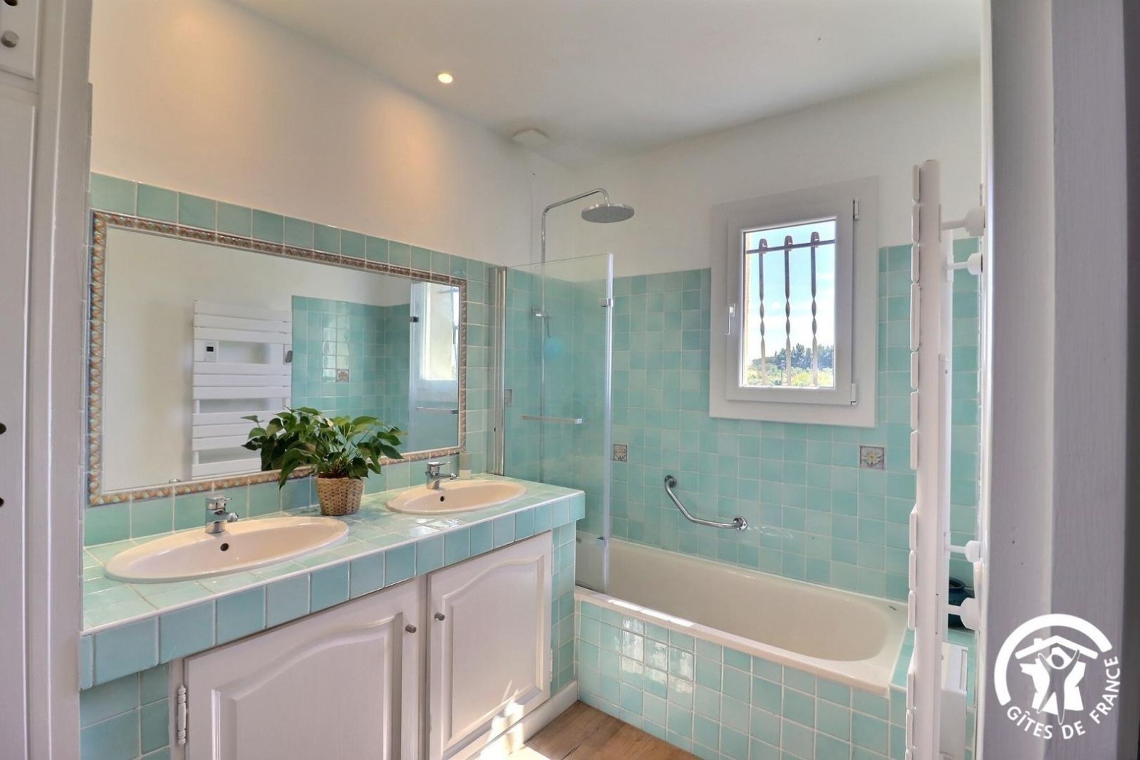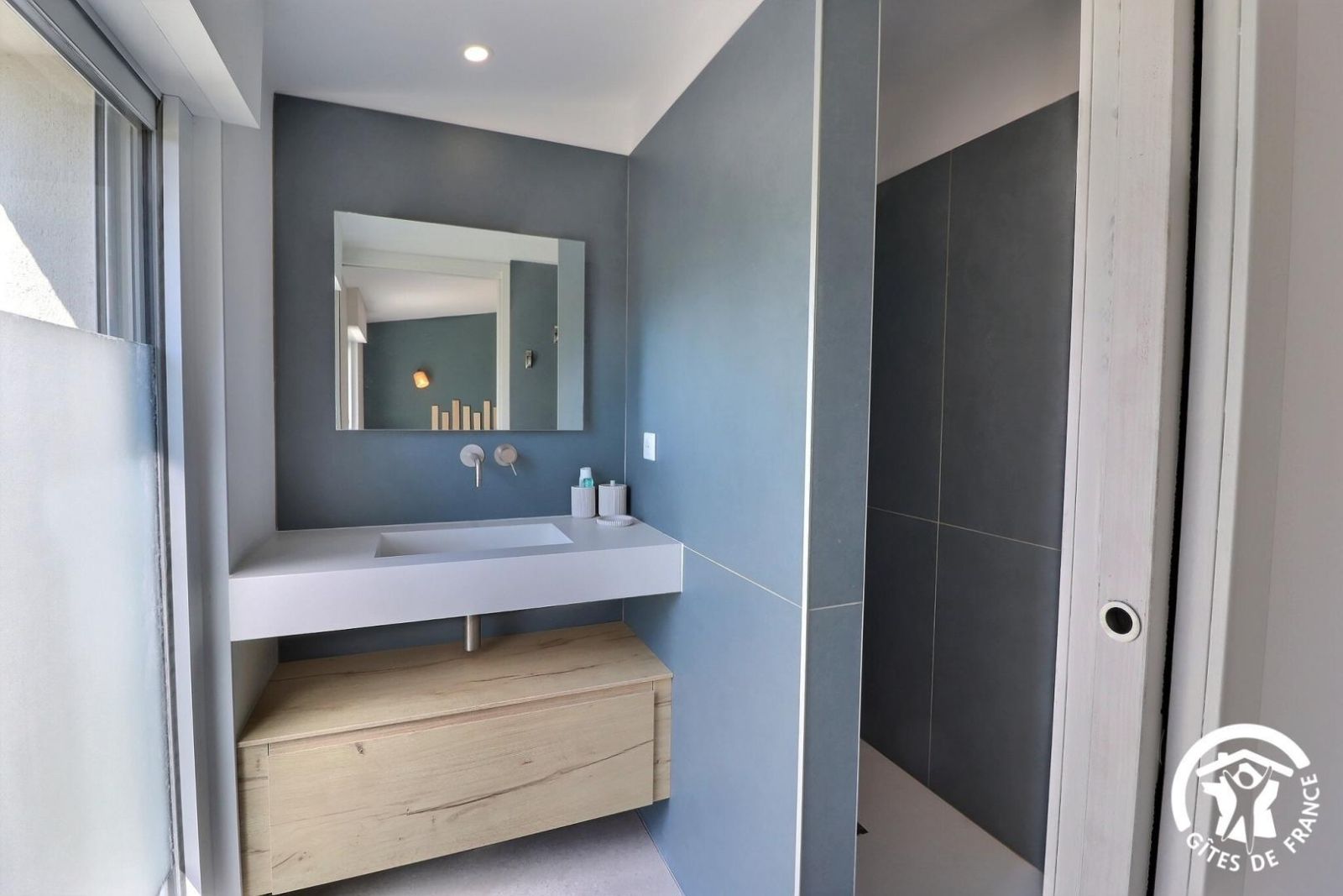 - une salle de bain avec baignoire, meuble double vaques et un sèche-serviette chauffant, rangement. Vous pourrez vous garer dans le jardin entièrement clôturé.