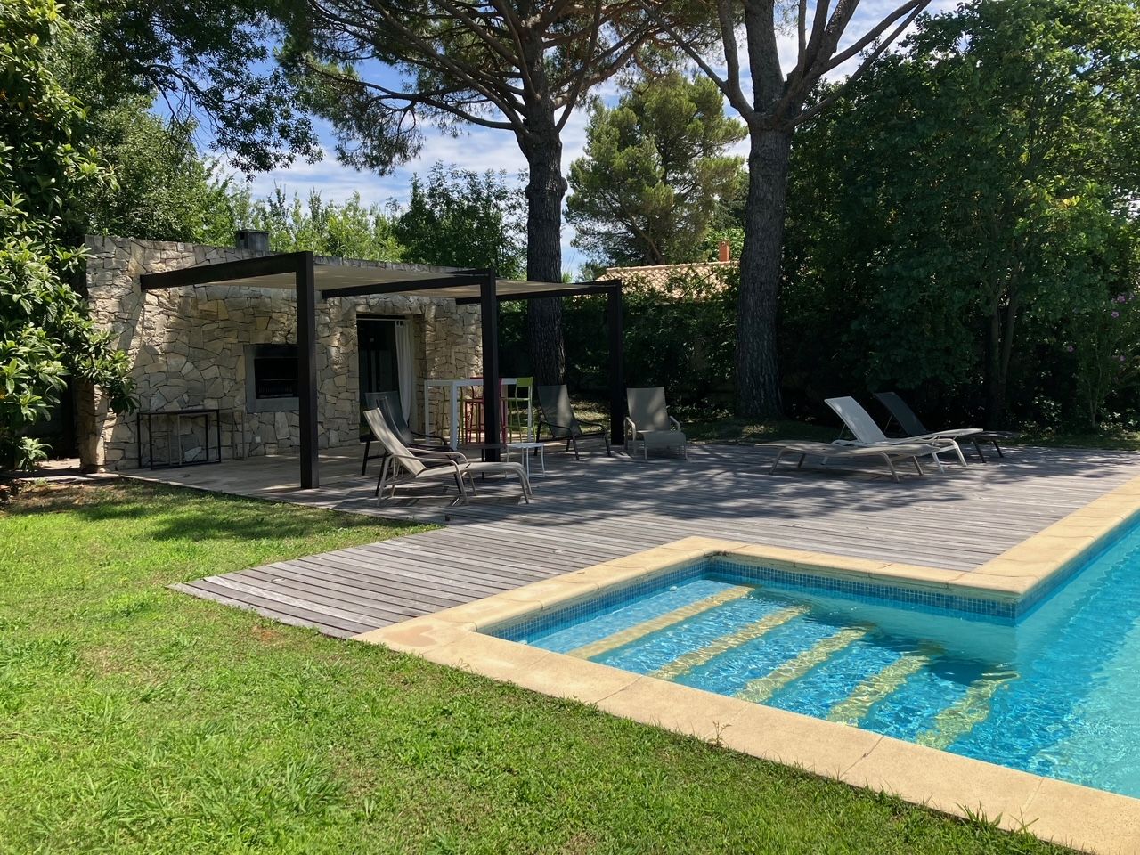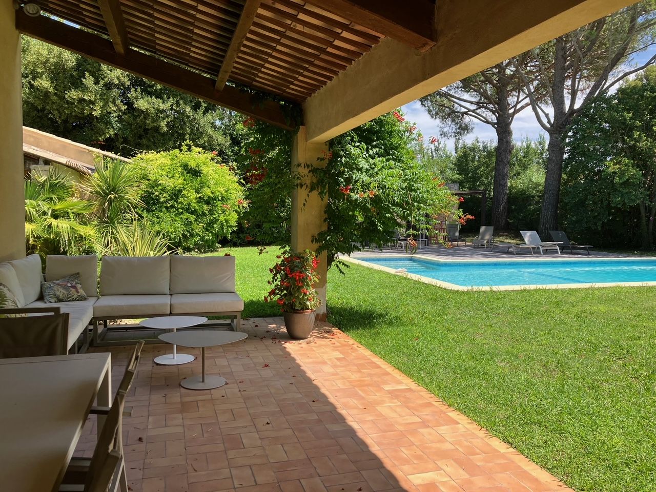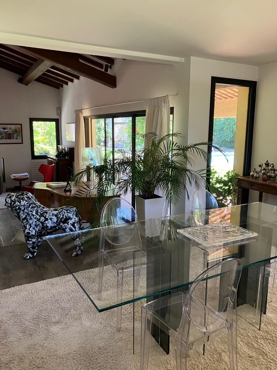 La maison comprend 2 salons, 1 grand salon très ouvert sur l'extérieur et le jardin intérieur et 1 salon plus intimiste de télévision, 1 salle a manger , 1 grande cuisine toute équipée, 4 chambres et 3 salles de bain, 1 buanderie. Les zones de dégagement (couloirs, entrée, sont spacieuses et fonctionnelles). Plusieurs terrasses ombragées selon l'exposition ( 1 zone de salon extérieur, 2 zones extérieures de repas, terrasses pour 3 chambres, la 4ème donne directement dans le jardin). Le jardin est aménagé avec une piscine de 11 par 6m bordée d'un deck en bois et un pool-house fonctionnel ( évier, frigo, chauffe-eau, douche) avec une terrasse sous toile ombragée. La grande cour permet le parking de plusieurs voitures.
